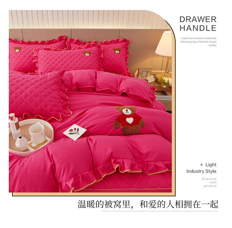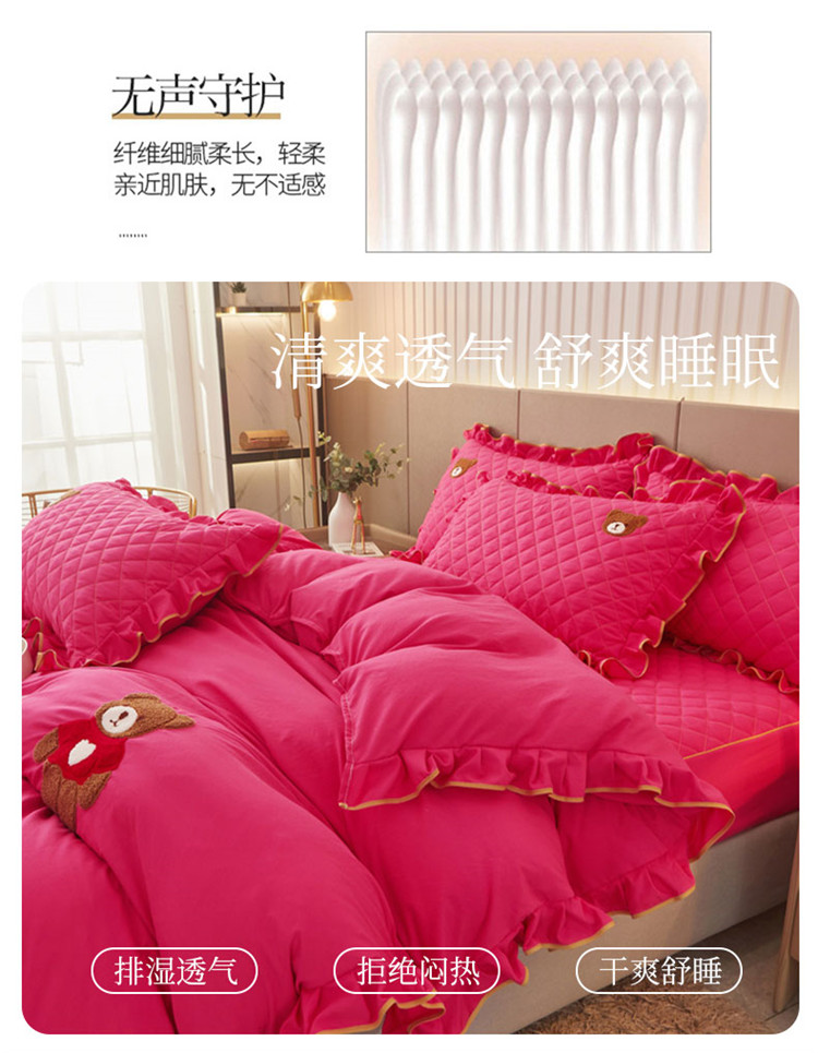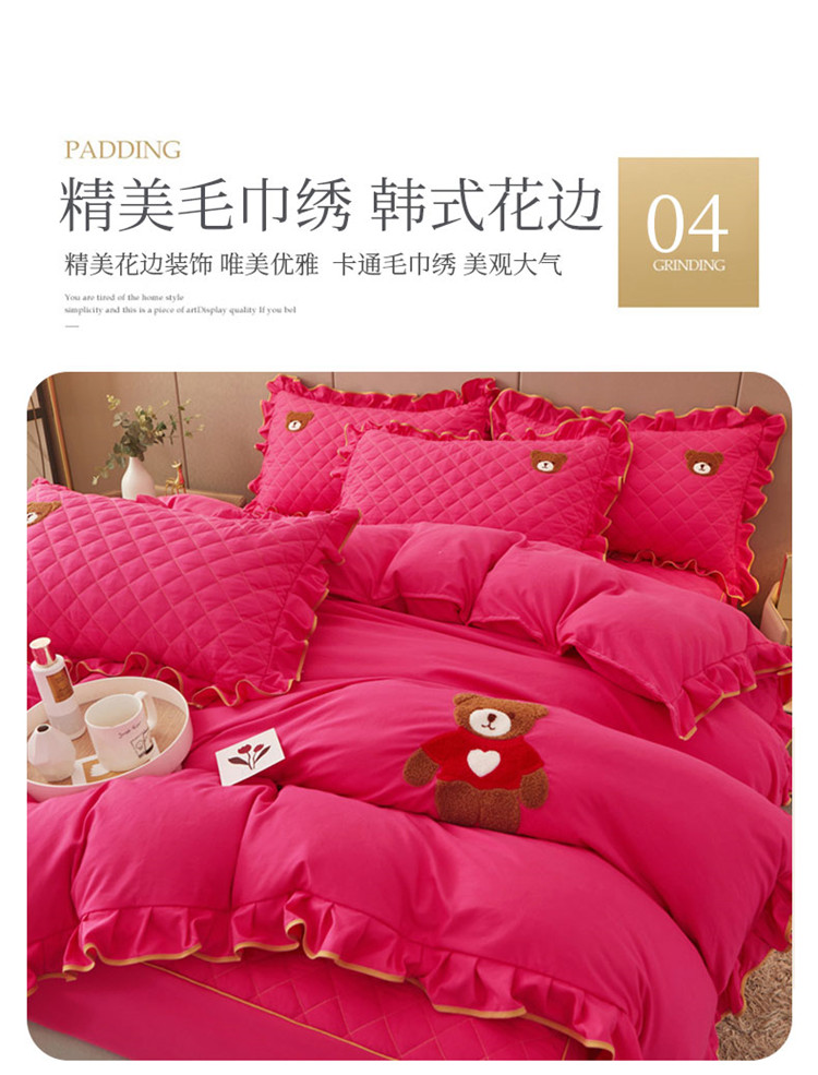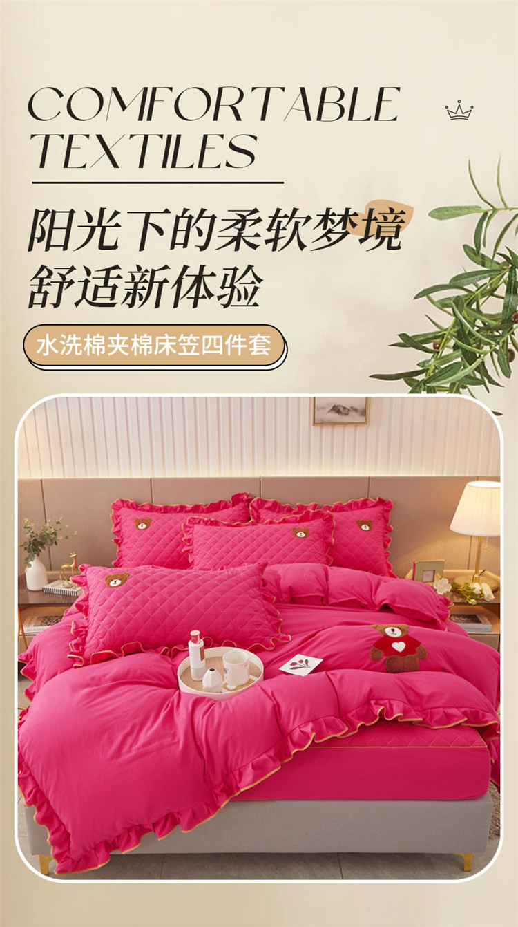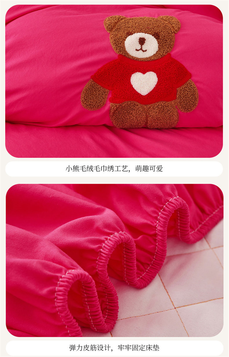 当前位置: 91家纺网 > 商品网购 > 床品套件 > 四件套 > 水洗棉四件套 > 屹成家纺 2024年水洗棉毛巾绣款床笠四件套 玫红