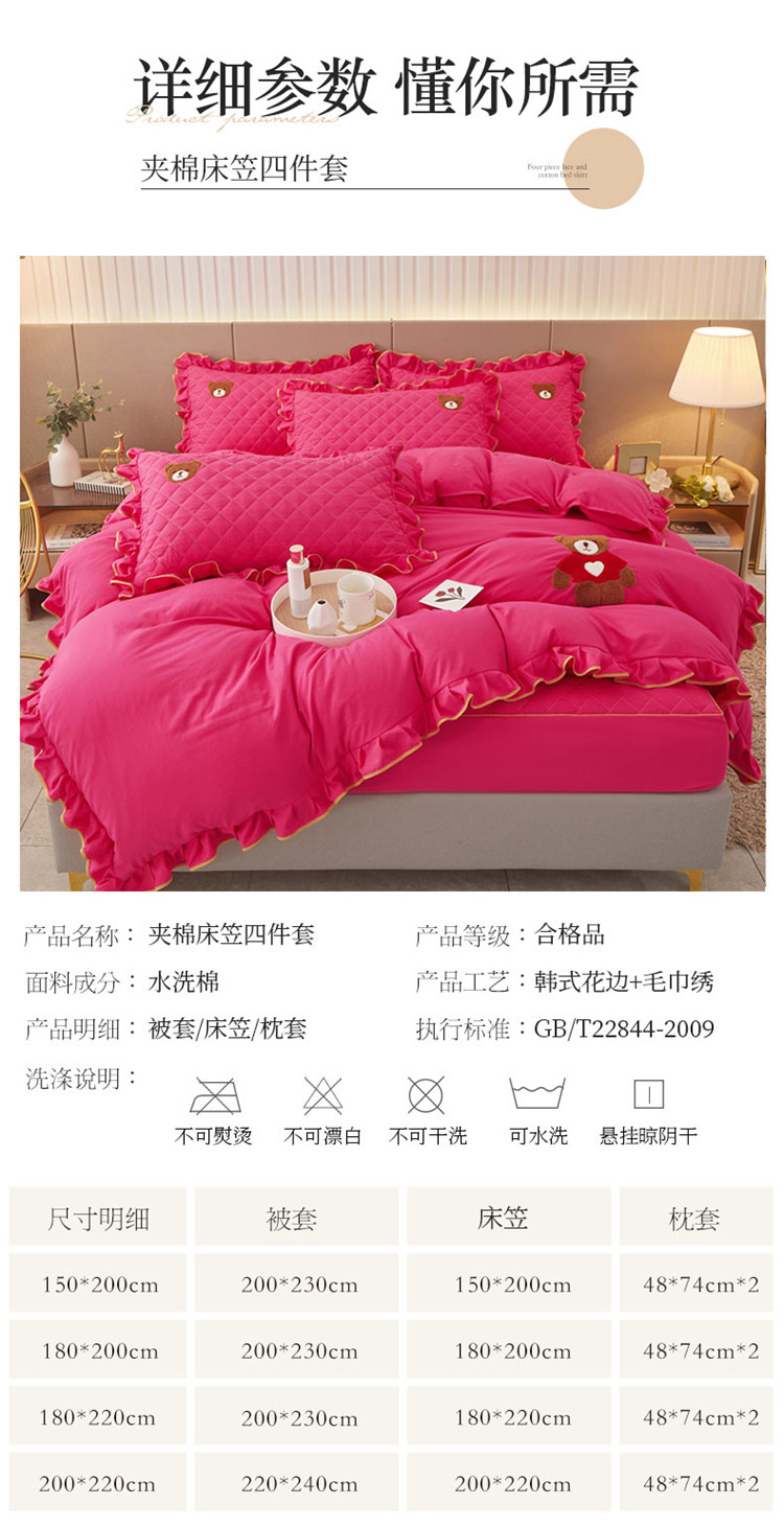 床笠180*200cm 被套220*240cm 枕套一对 | ¥150.00 |