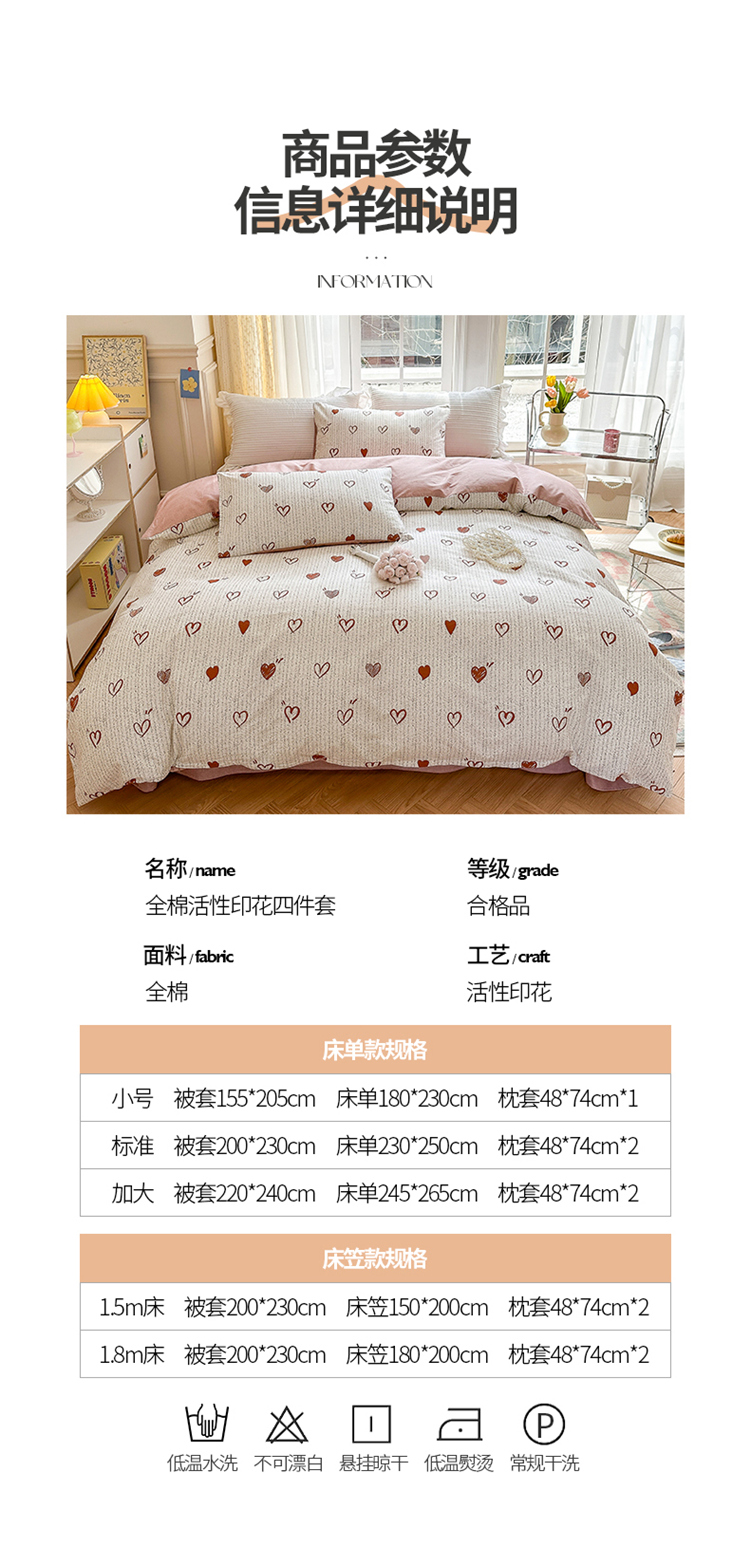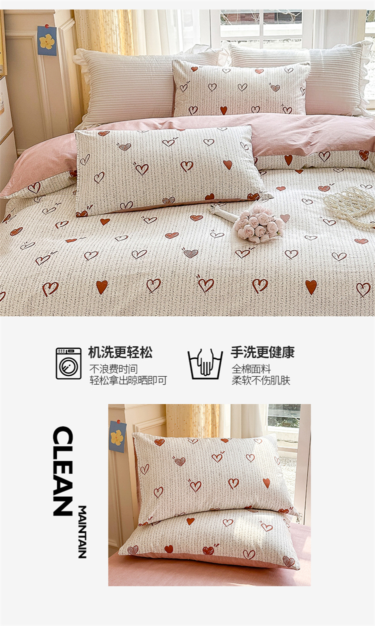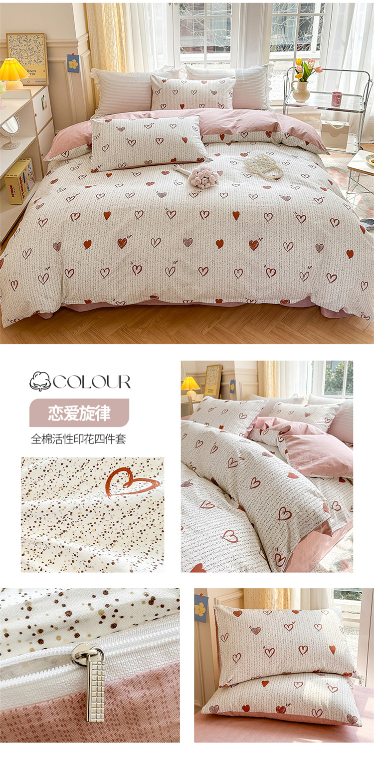 当前位置: 91家纺网 > 商品网购 > 床品套件 > 四件套 > 全棉普通四件套 > 清雅福 2023新款全棉小清新四件套 恋爱旋律