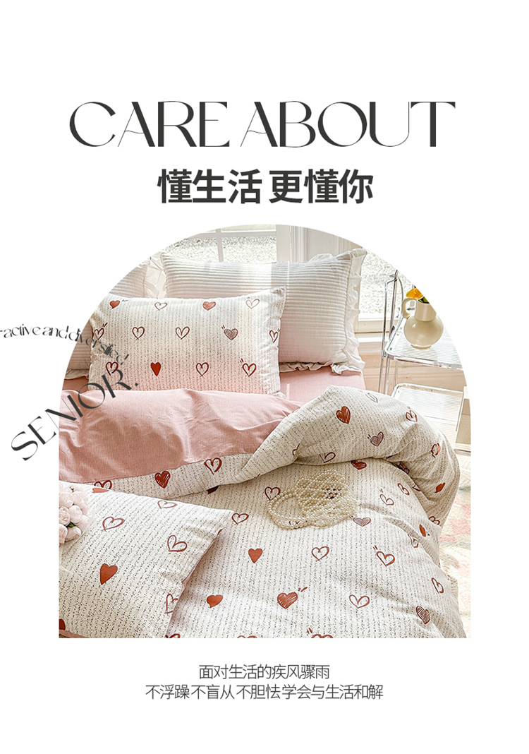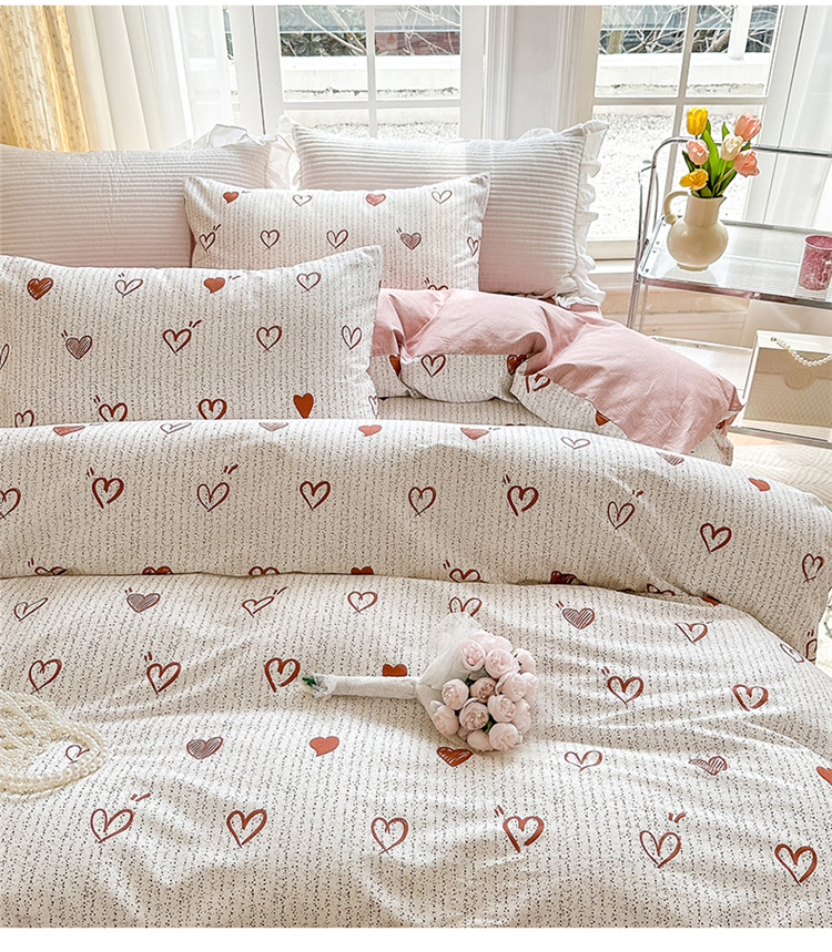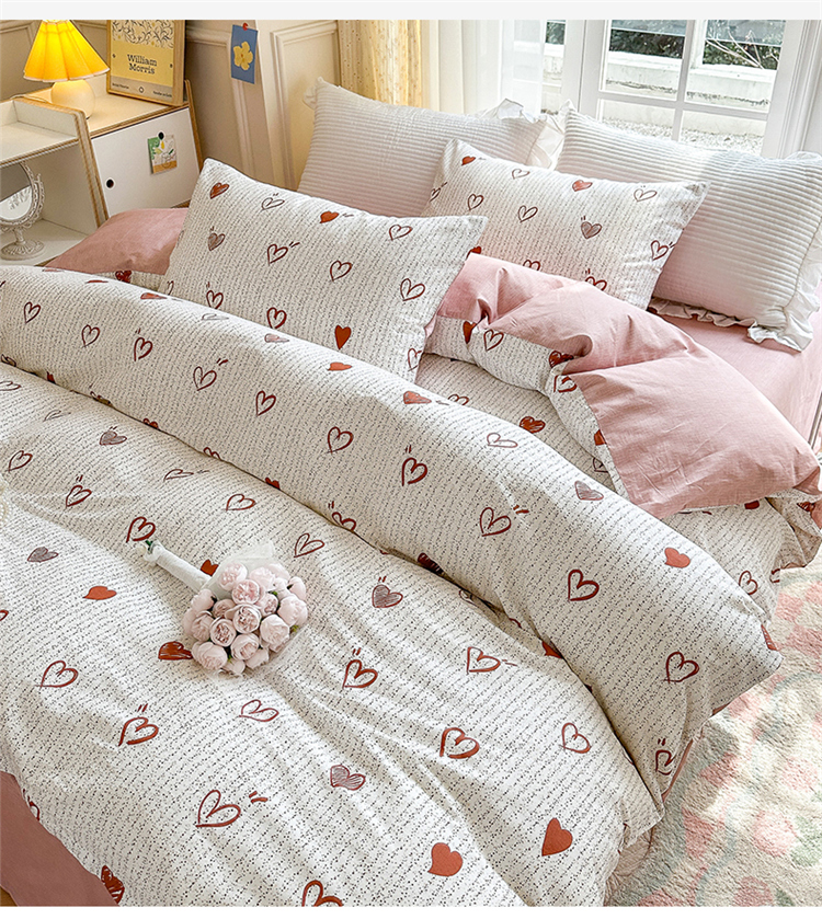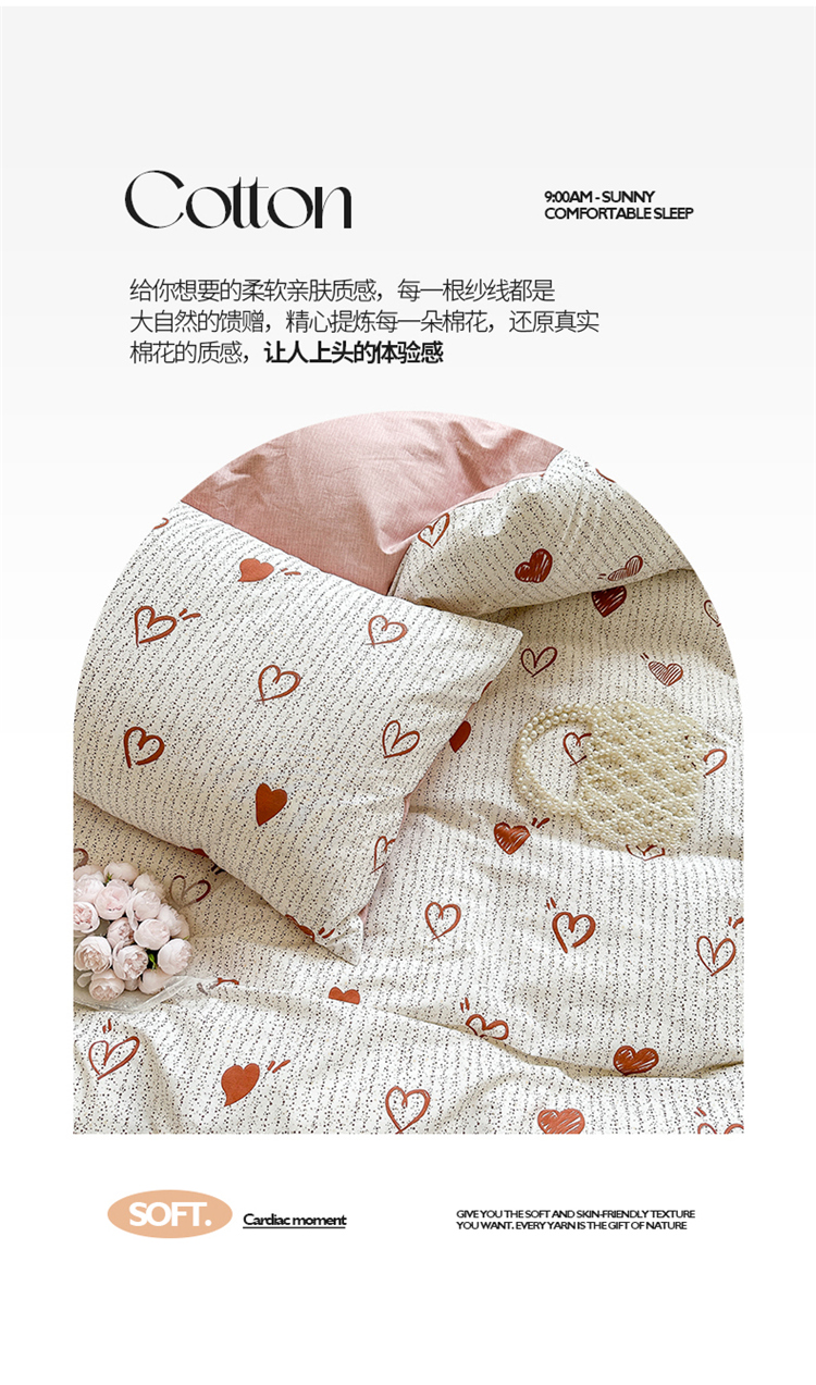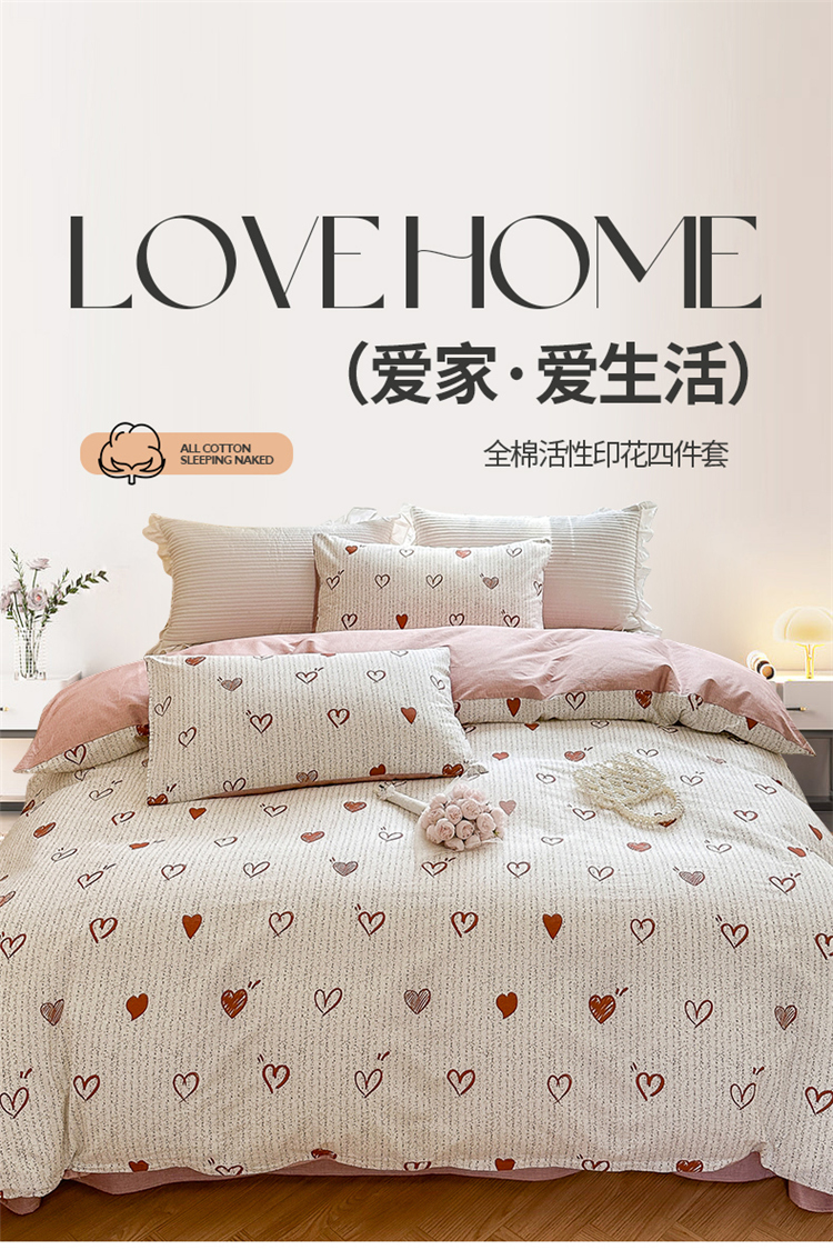 当前位置: 91家纺网 > 商品网购 > 床品套件 > 四件套 > 全棉普通四件套 > 清雅福 2023新款全棉小清新四件套 恋爱旋律