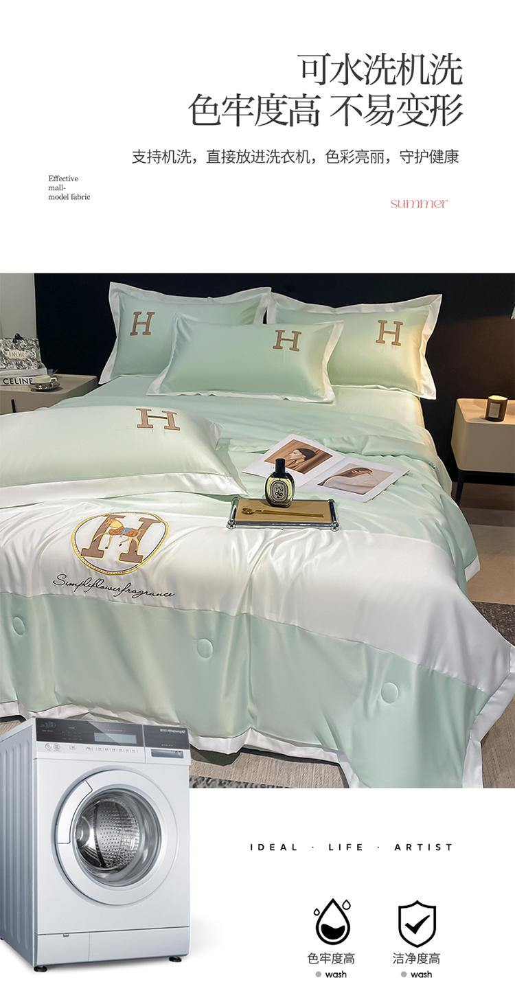 商品名称:苹果星 2023新款水洗天丝刺绣夏被 绿色