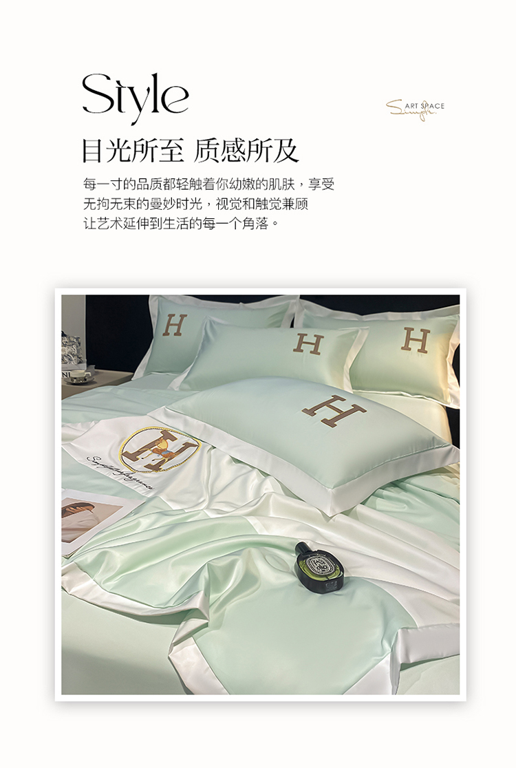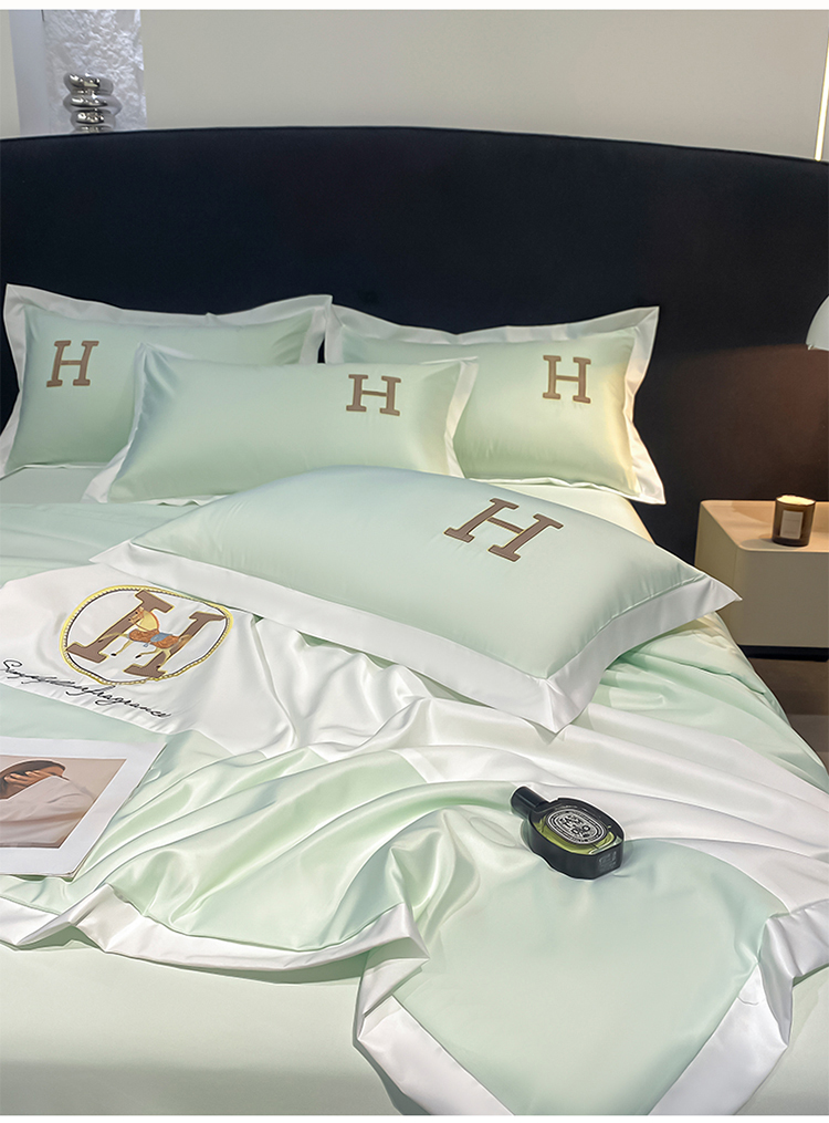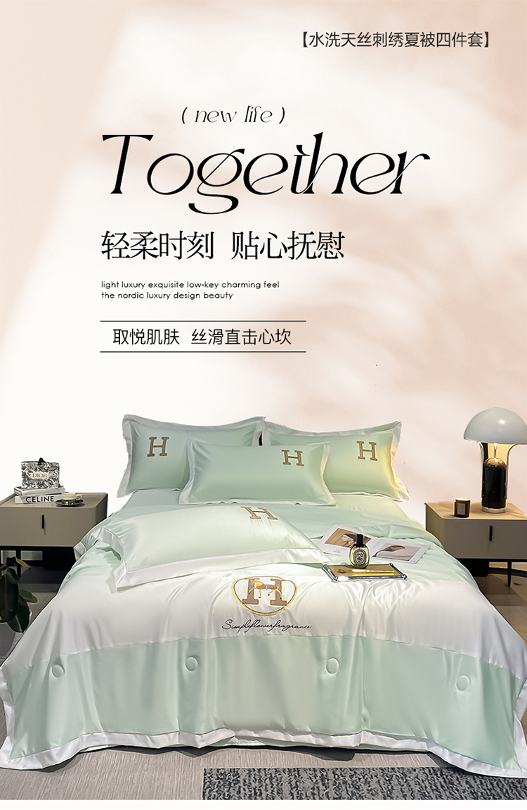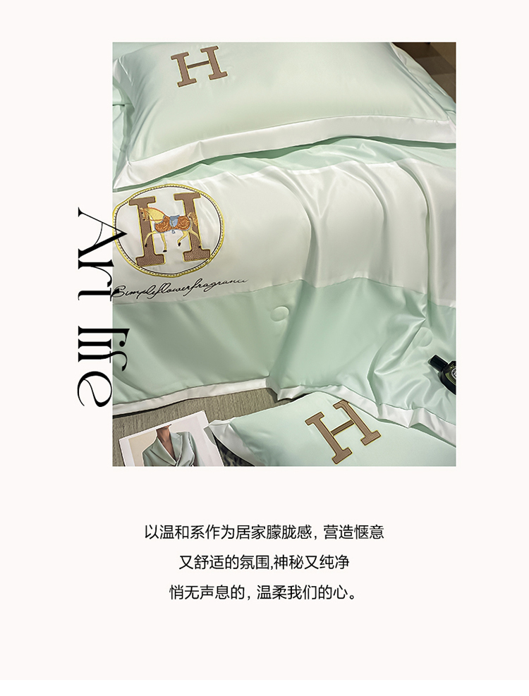 苹果星 2023新款水洗天丝刺绣夏被 绿色