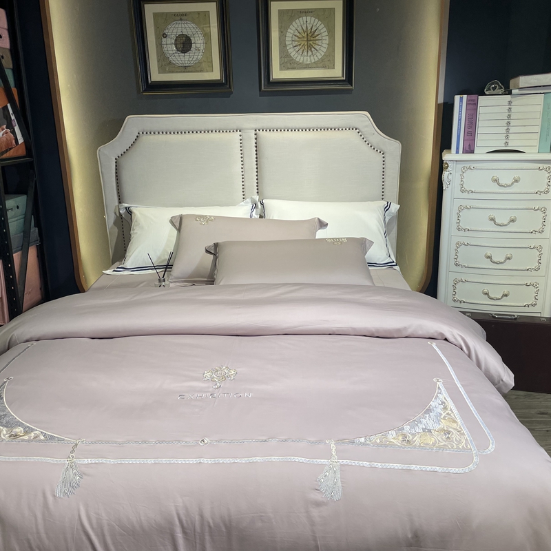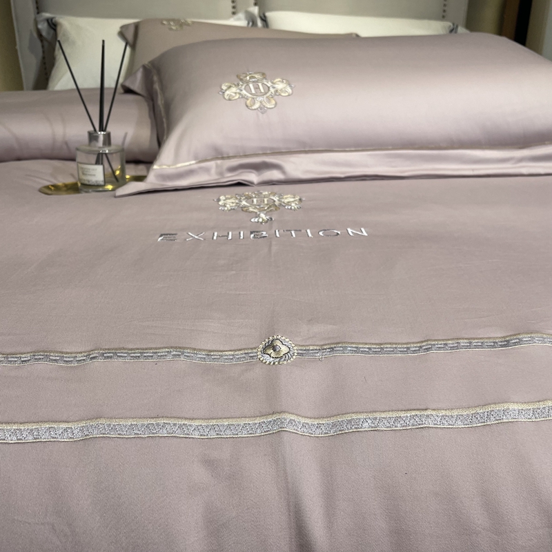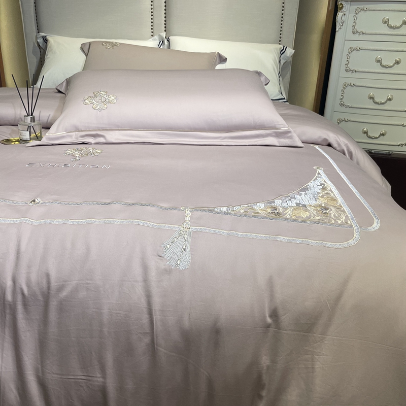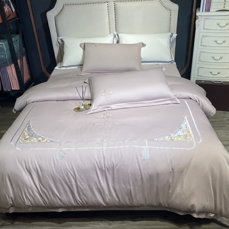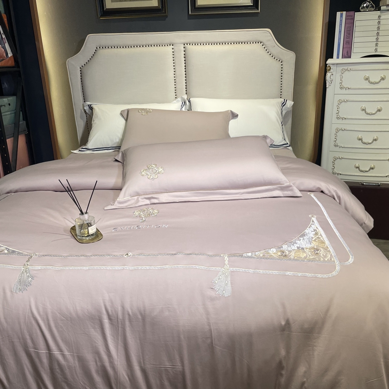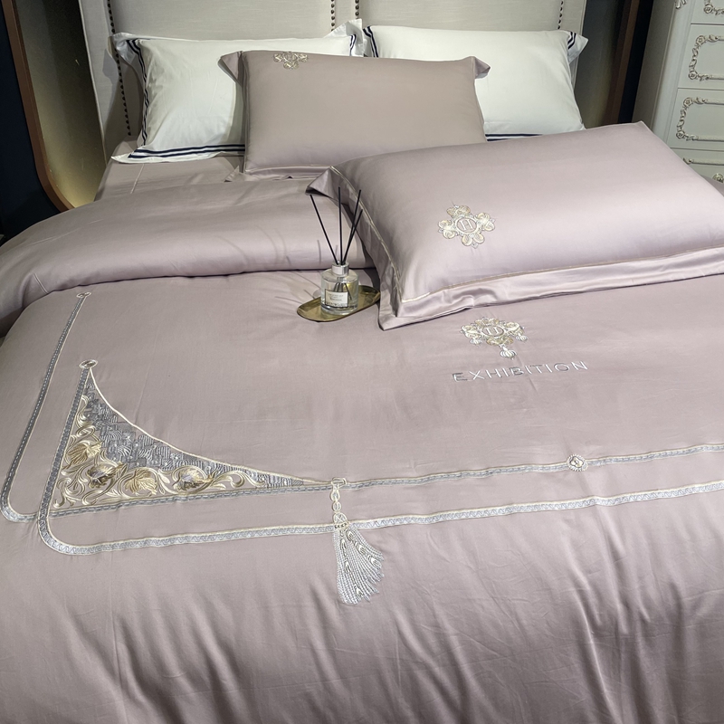 玖玖爱家纺 2023新款春夏秋新款天丝棉绣花四件套 烟紫