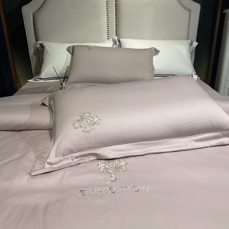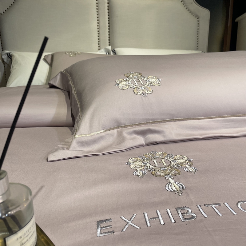 总玖玖爱家纺 纯棉100支贡缎长绒棉刺绣被套三件套四件套加大四件套,白色,高级灰,卡其,蓝灰,绿色,浅桔,深蓝,紫豆沙