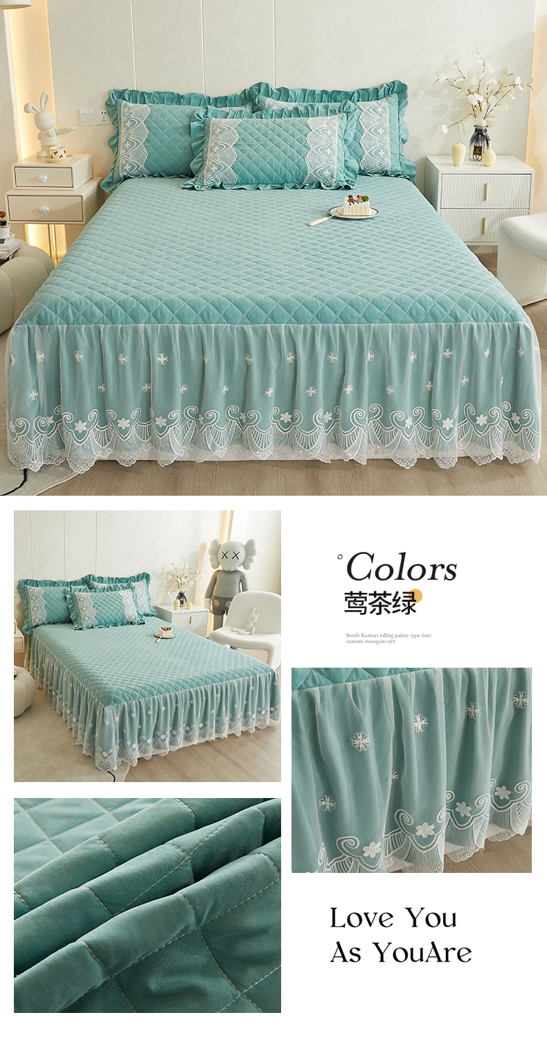 网红馆 2025新款亲肤蕾丝床裙-梦想生活 莺茶绿