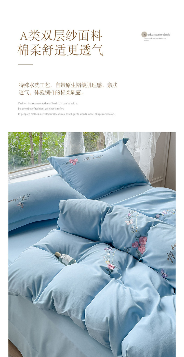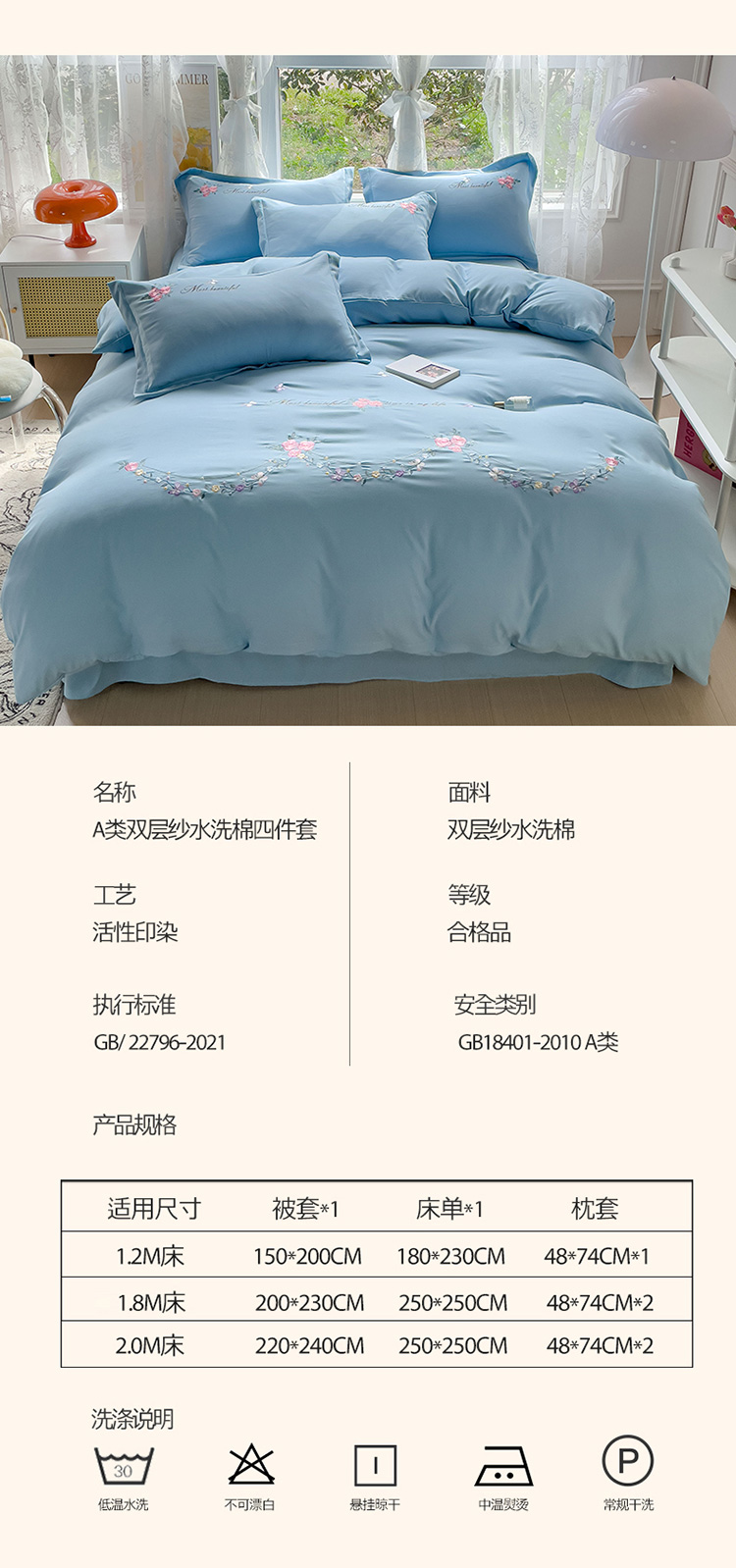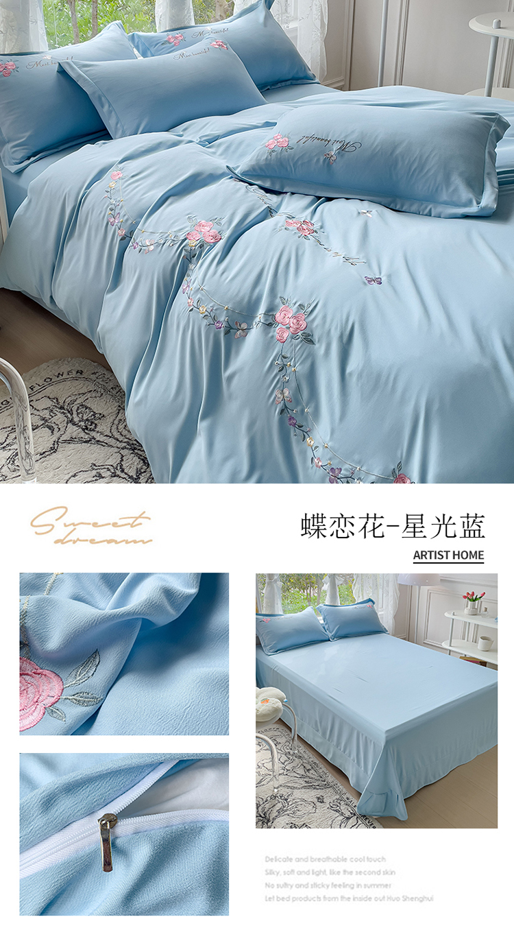 2023春夏新品A类双层纱水洗棉麻四件套-蝶恋花系列 蝶恋花-星光蓝