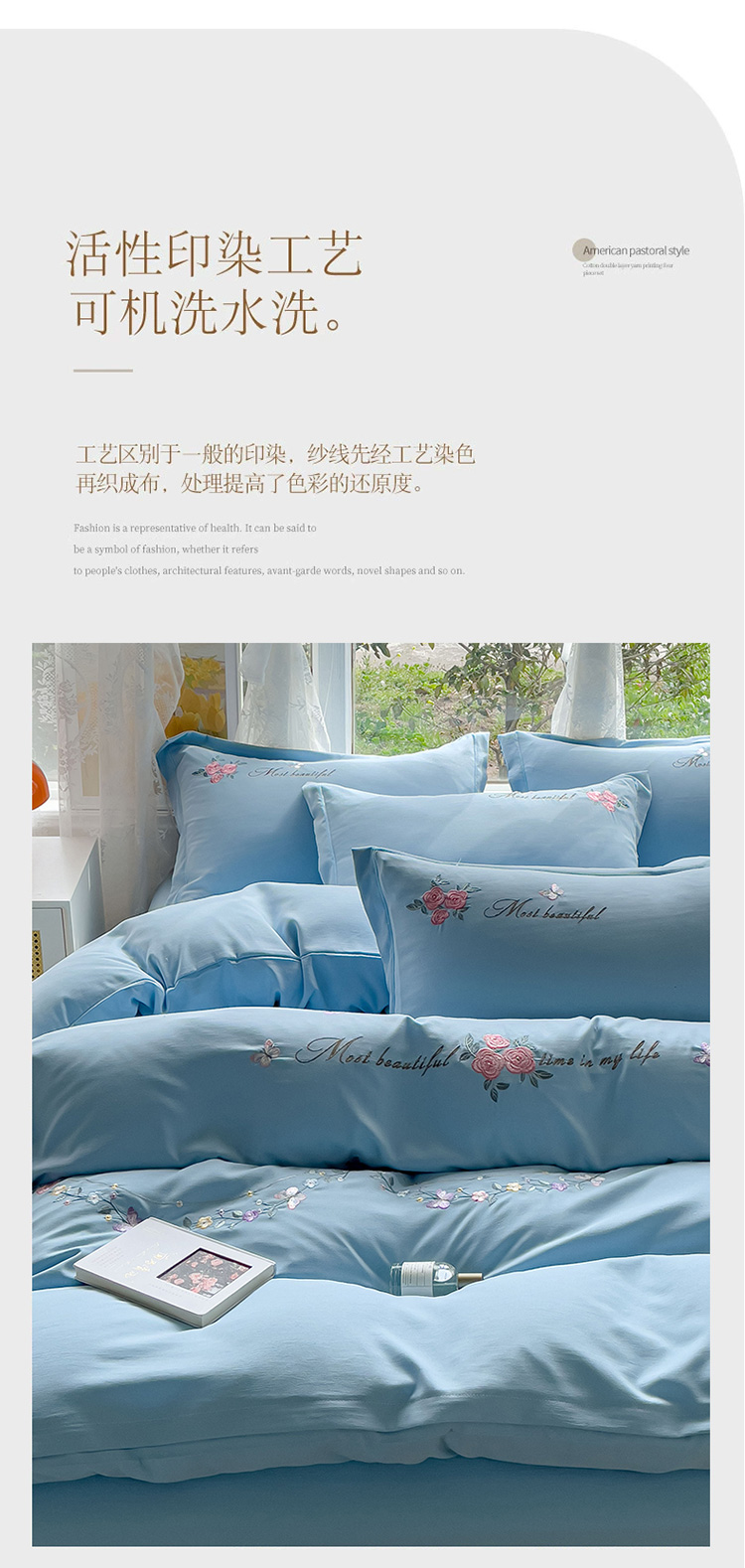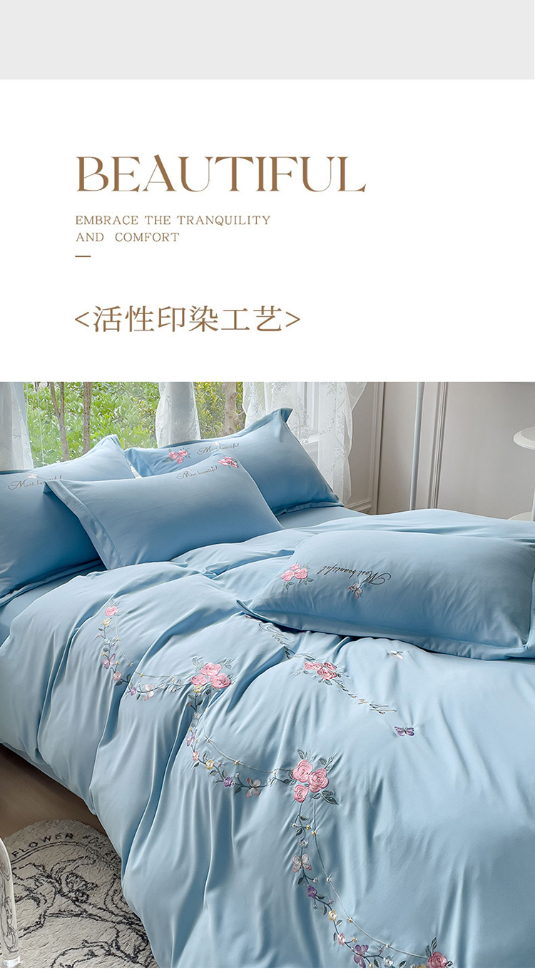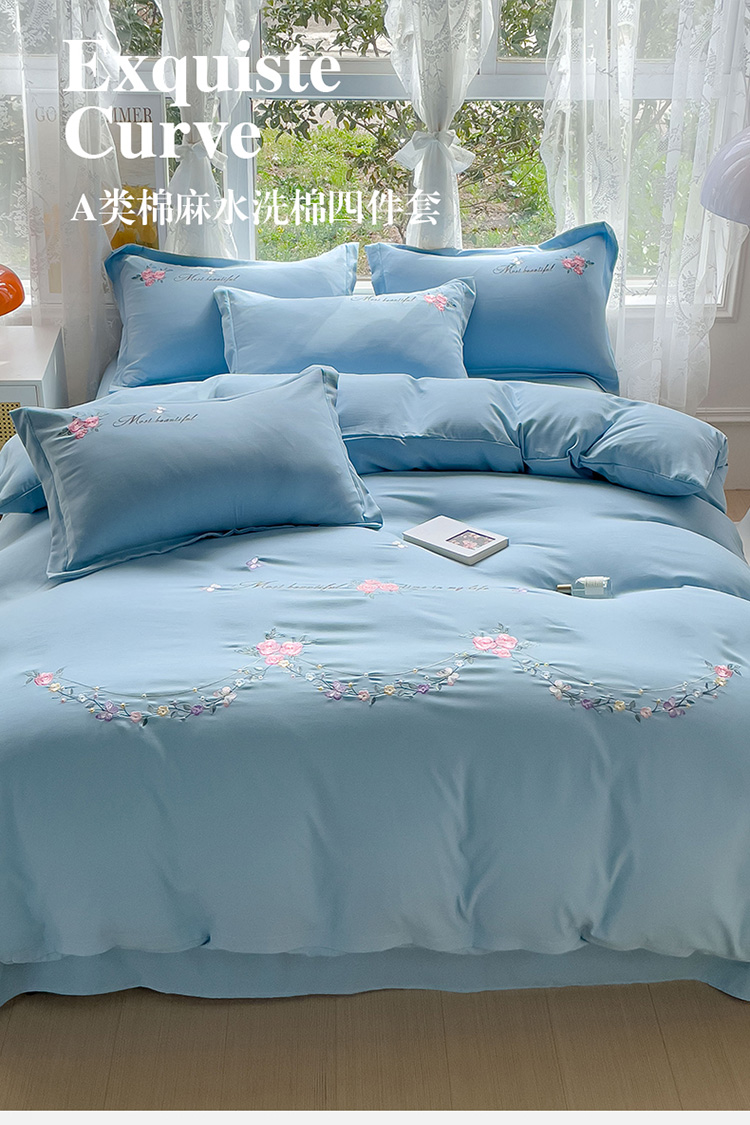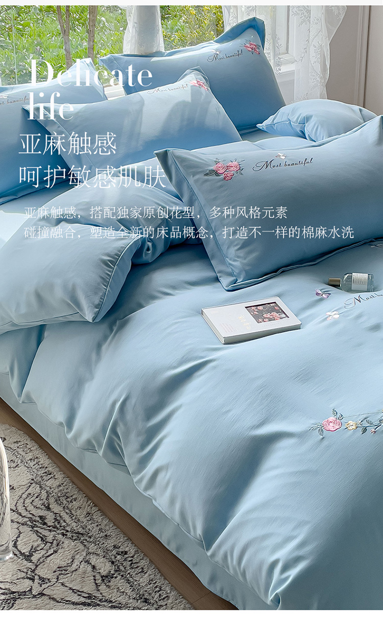 2023春夏新品A类双层纱水洗棉麻四件套-蝶恋花系列 蝶恋花-星光蓝