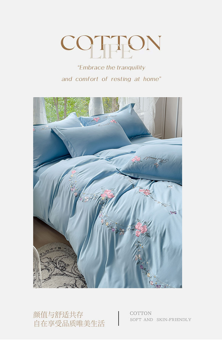 (总)云锦2023秋冬新品全棉磨毛绣花四件套-漫野花香,漫野花香粉,漫野花香灰,漫野花香橘,漫野花香蓝,漫野花香紫