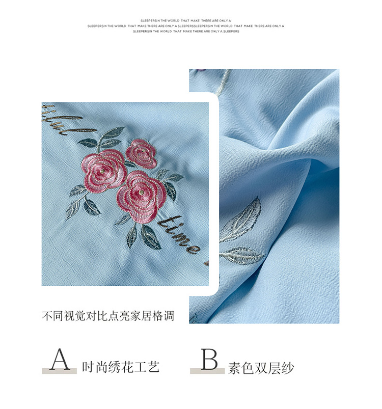 商品名称:2023春夏新品A类双层纱水洗棉麻四件套-蝶恋花系列 蝶恋花-星光蓝