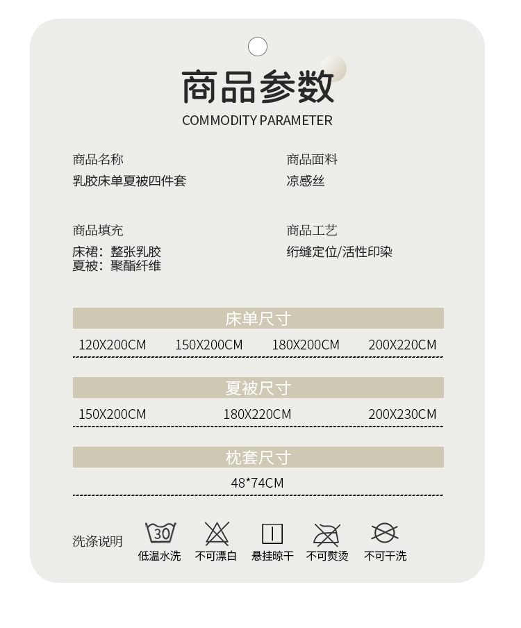 1.8*2.2四件套(配2*2.3夏被枕套一对) | ¥120.00 |