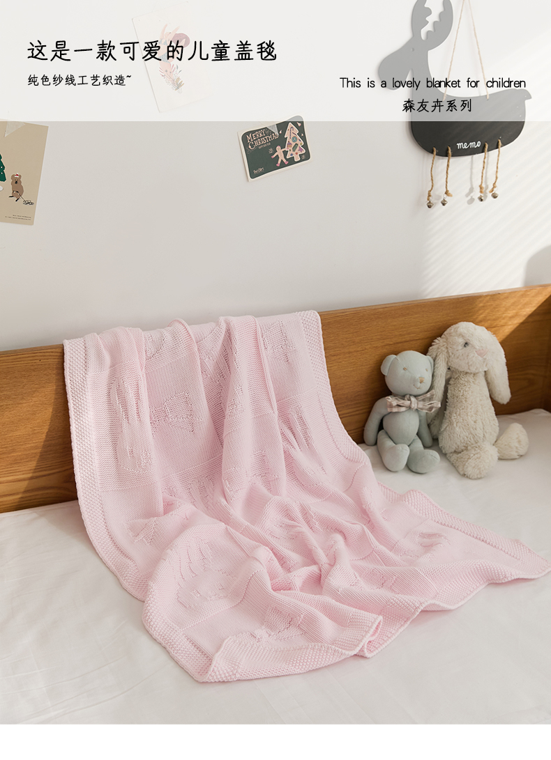 商品名称:暖绵绵 2025新款儿童全棉盖毯针织毯子-森友卉 裸粉华夫格