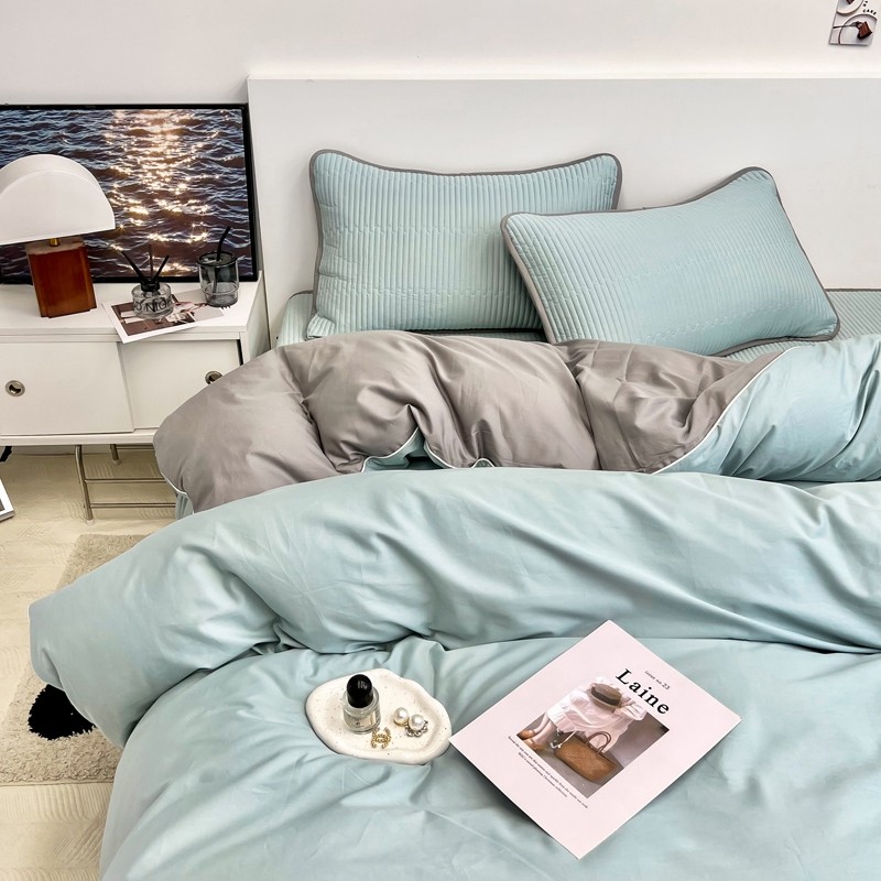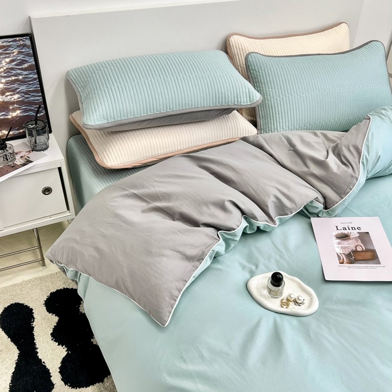 当前位置: 91家纺网 > 商品网购 > 床品套件 > 三件套 > 茉夕 2023新款双面纯棉高温砂洗纯色撞色三件套系列 绿+灰