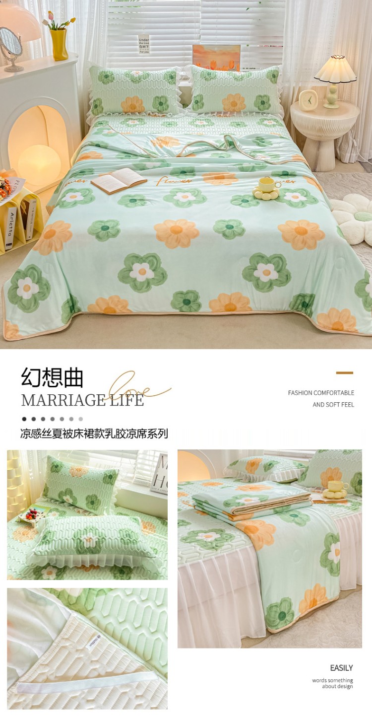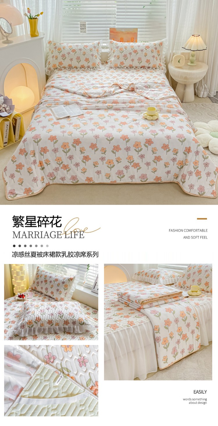 (总)慕澄2023新款小版床裙款雪纺乳胶凉席夏被四件套