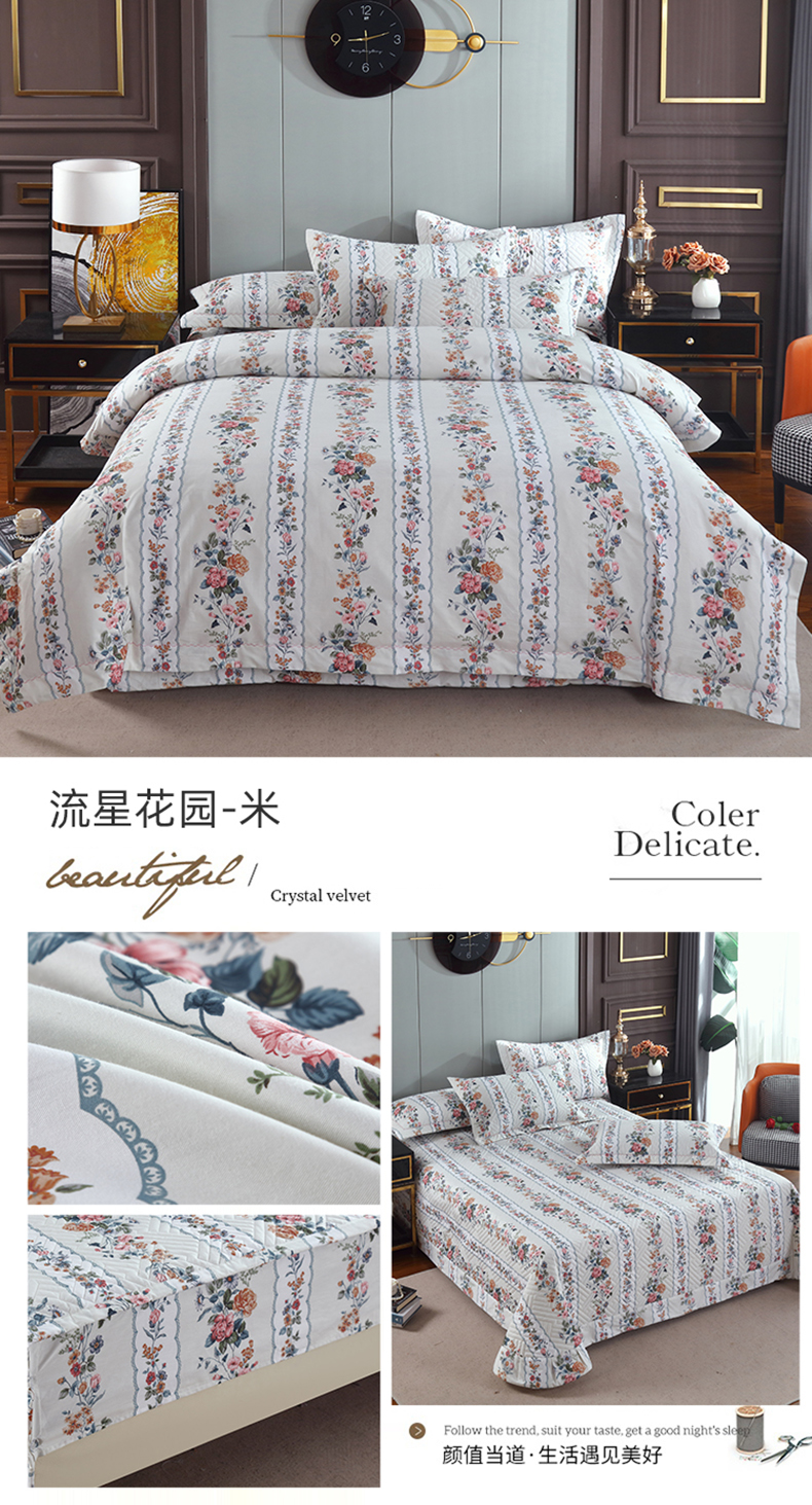 当前位置: 91家纺网 > 商品网购 > 床品套件 > 四件套 > 全棉普通四件套 > OL家纺 2023新款13376全棉夹棉床盖四件套 流星花园-米