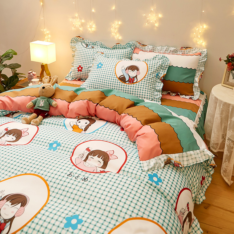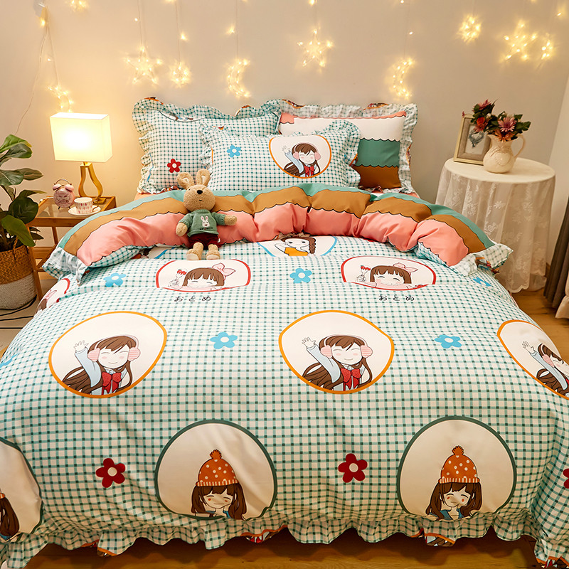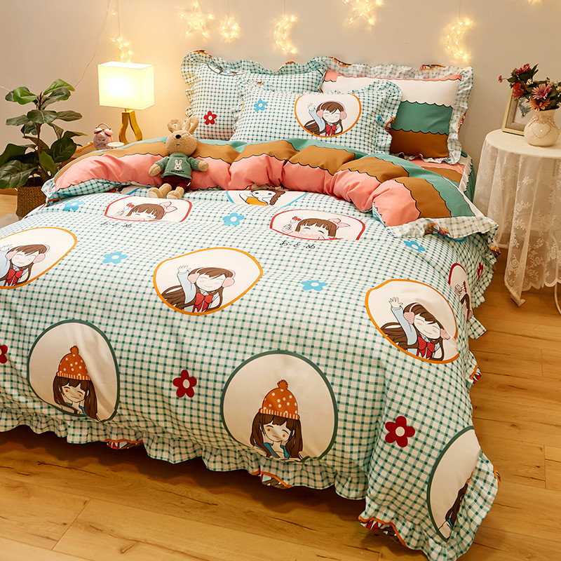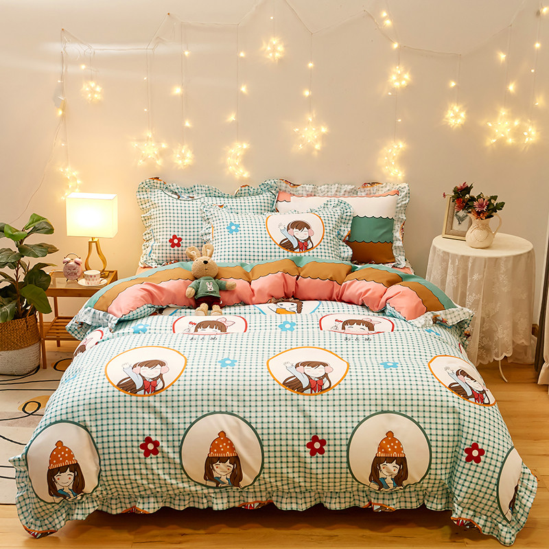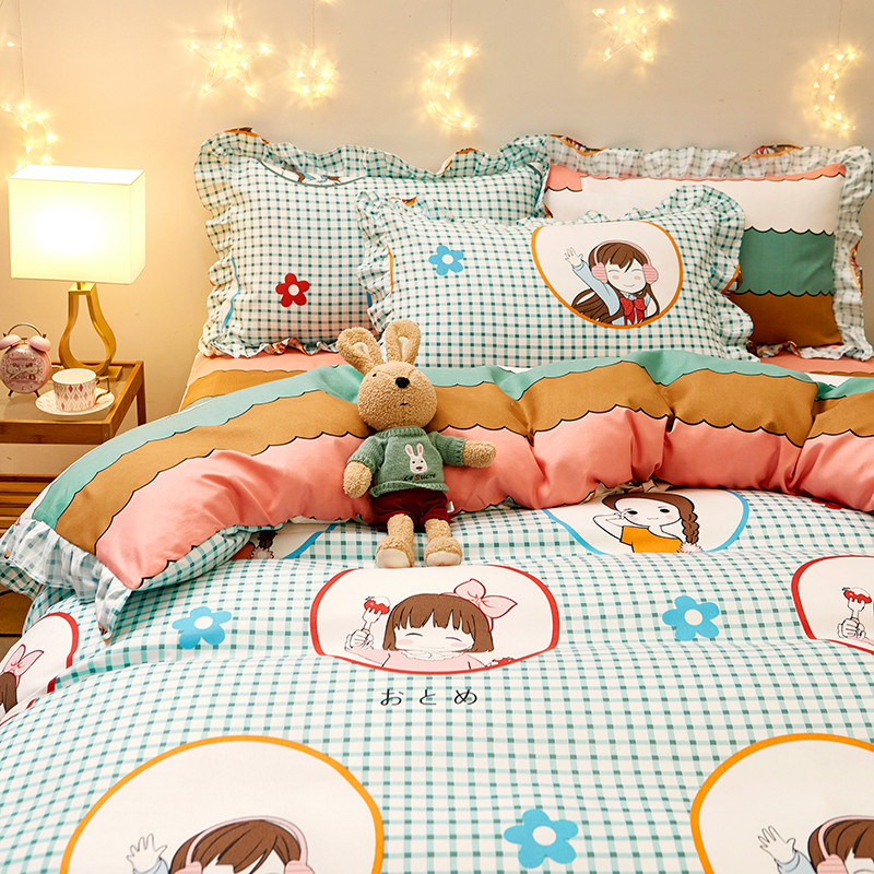 当前位置: 91家纺网 > 商品网购 > 床品套件 > 四件套 > 普通磨毛四件套 > 艾橙家纺 2023新款小清新韩版磨毛花边四件套 彩虹女孩