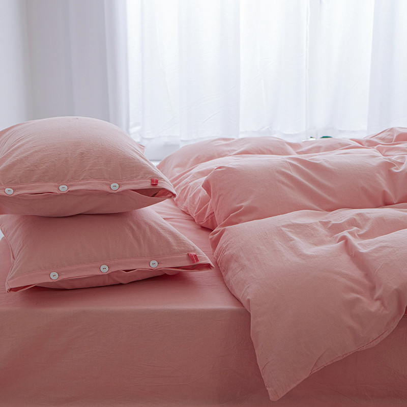 当前位置: 91家纺网 > 商品网购 > 床品套件 > 四件套 > 全棉普通四件套 > 安莱生活 2023年水洗棉全棉色经色纬高支高密纽扣款工艺四件套 嫩粉