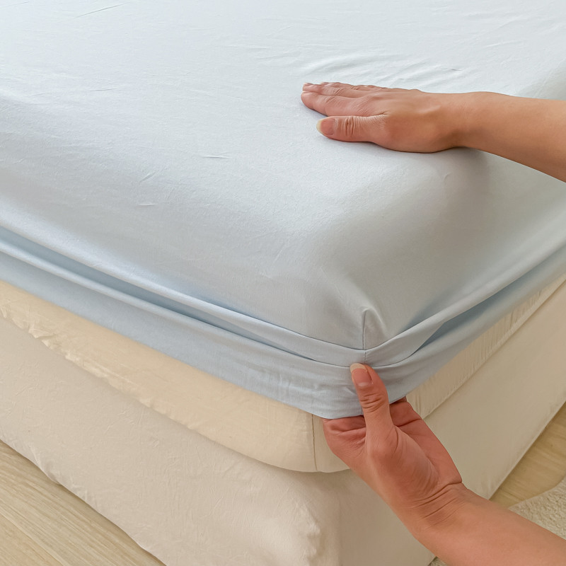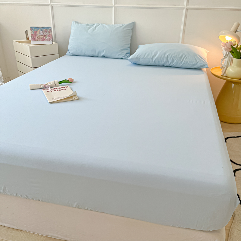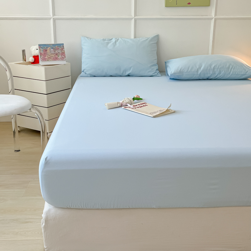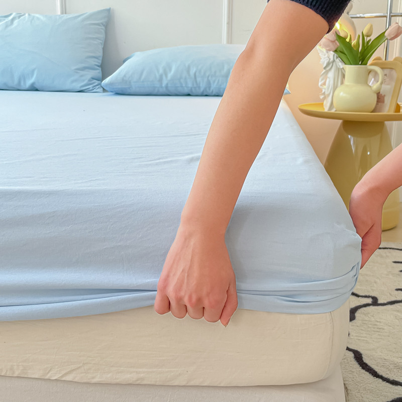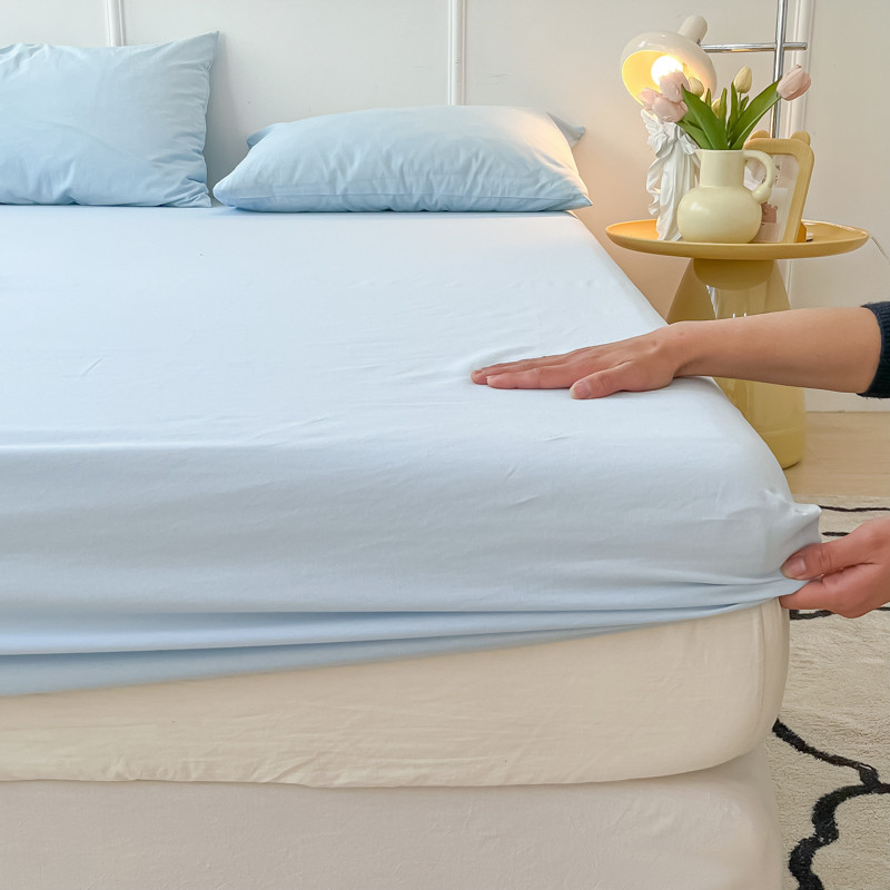 盼季 2023新款水洗棉床笠三件套防滑床罩席梦思全包围保护套 奶蓝