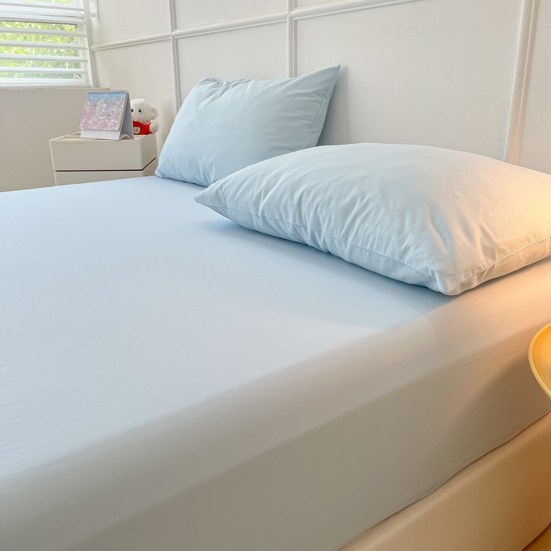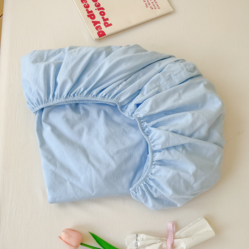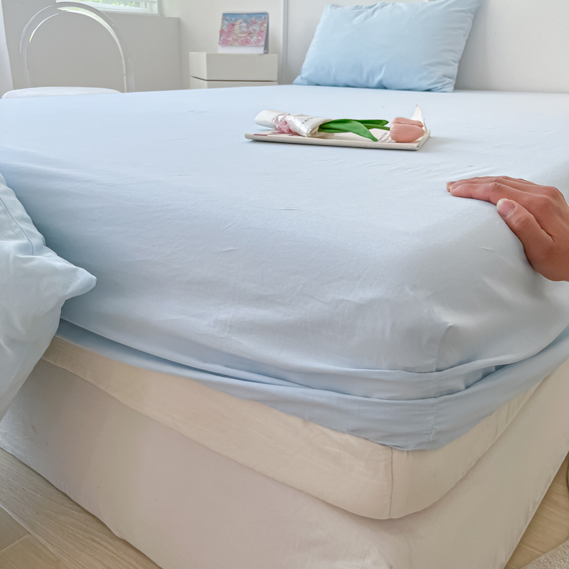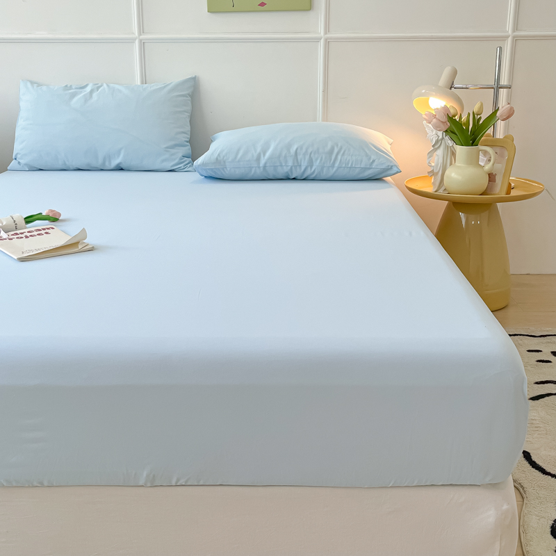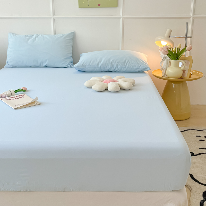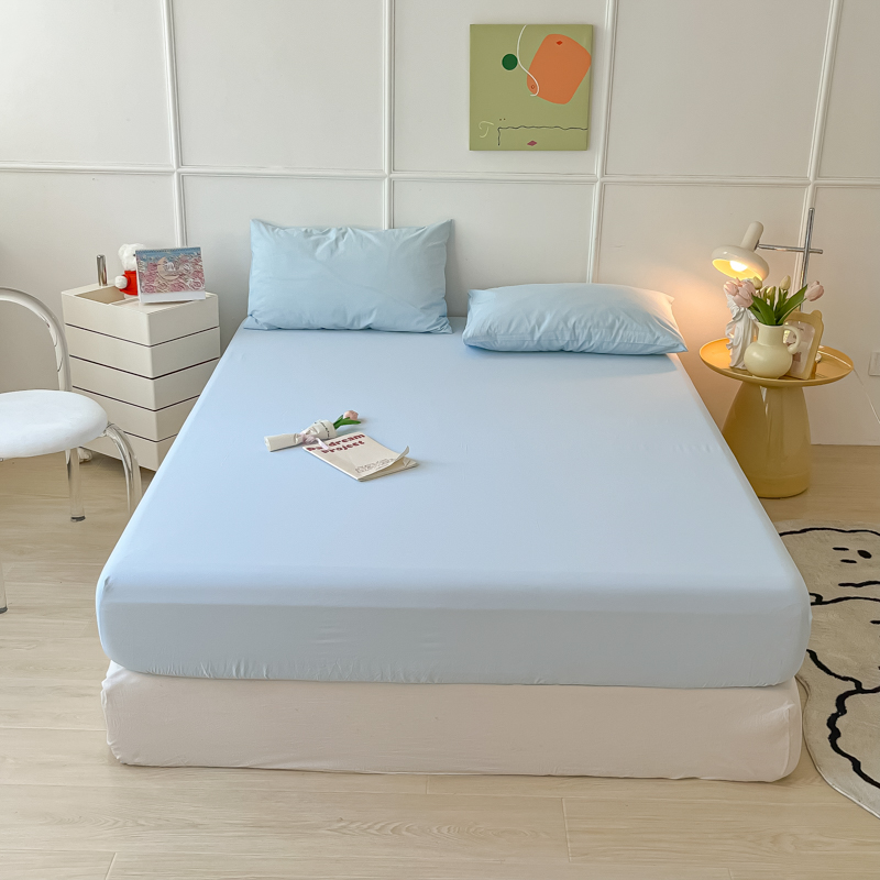 盼季 2023新款水洗棉床笠三件套防滑床罩席梦思全包围保护套 奶蓝