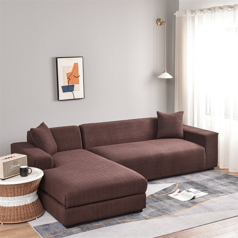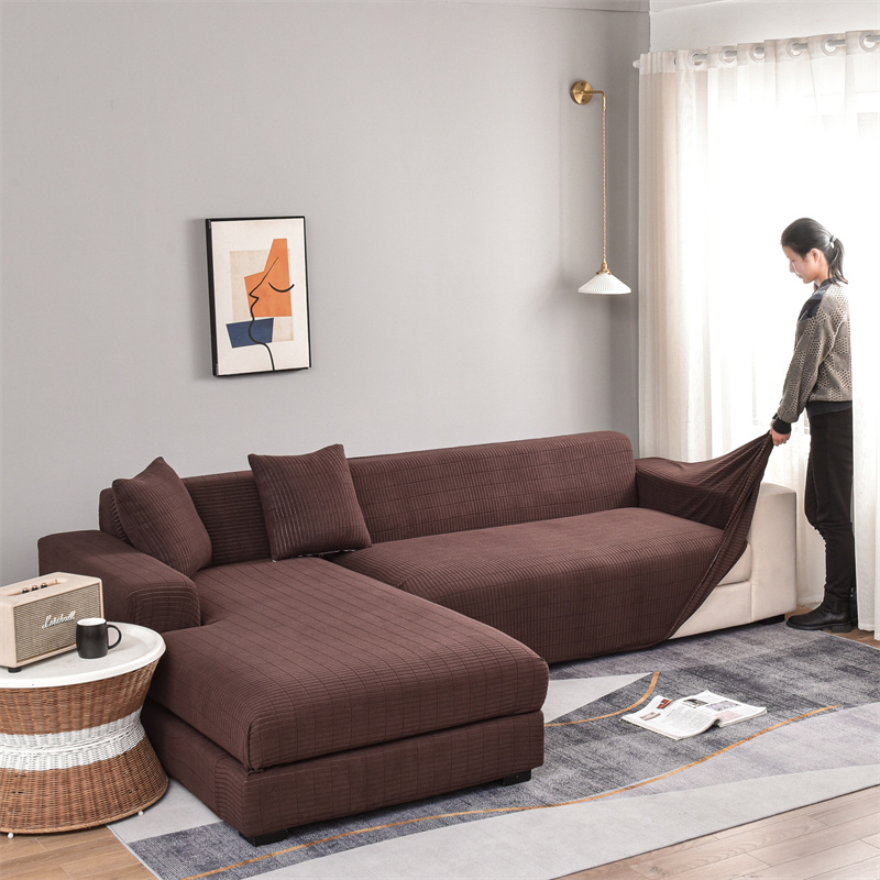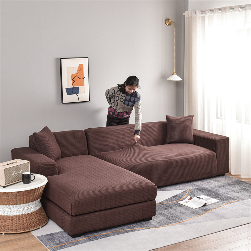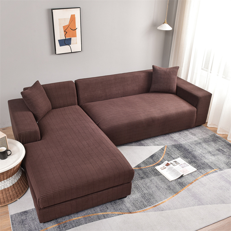 四季鹿 2023新款格格绒沙发套贵妃组合 深咖