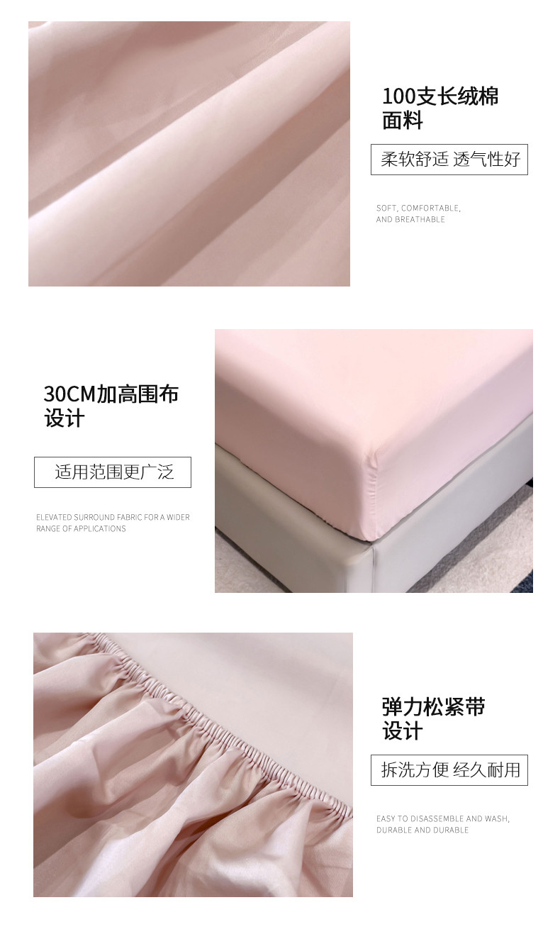 商品名称:金丝鸟 2023新款全棉100支长绒棉单品床笠 白桃粉