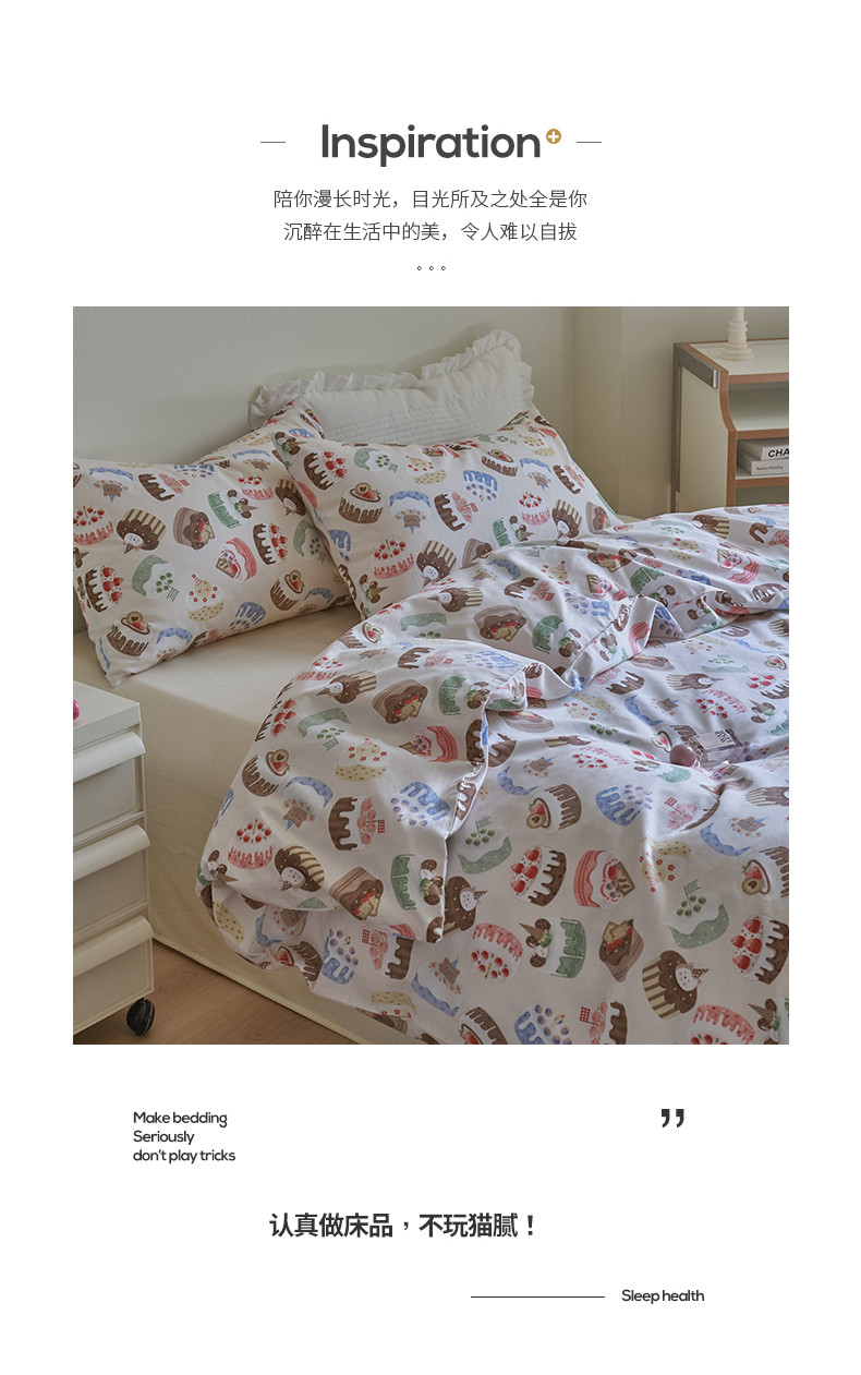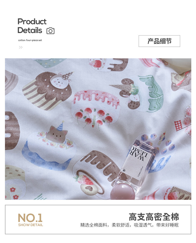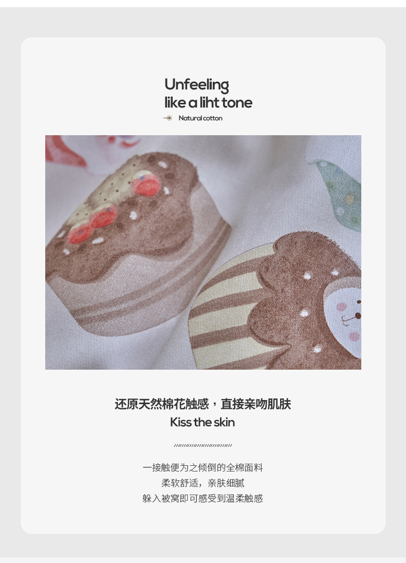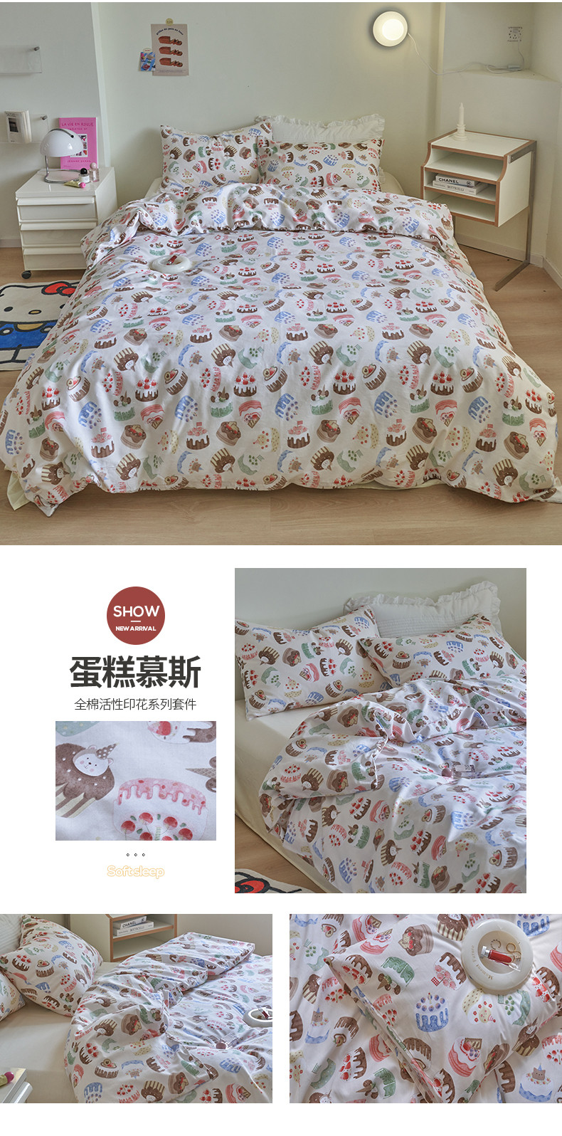 当前位置: 91家纺网 > 商品网购 > 床品套件 > 四件套 > 全棉普通四件套 > 窝米 2023新款13370全棉卡通风系列四件套 蛋糕慕斯