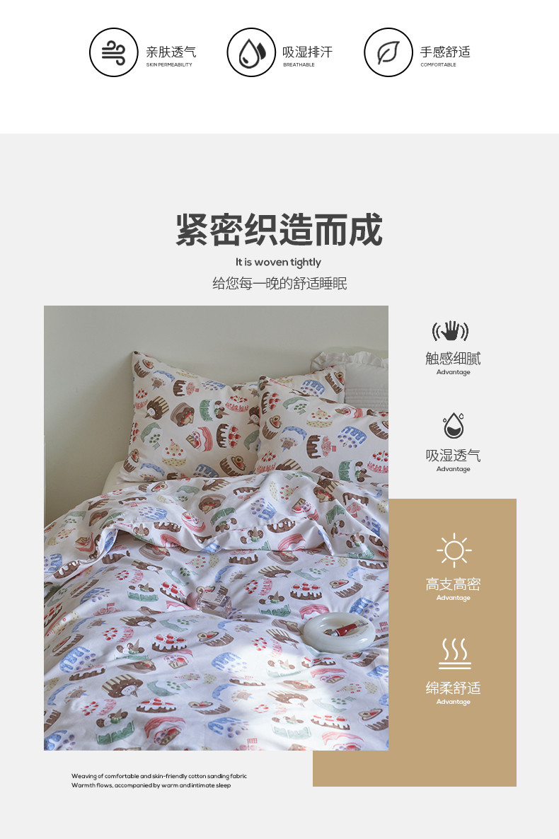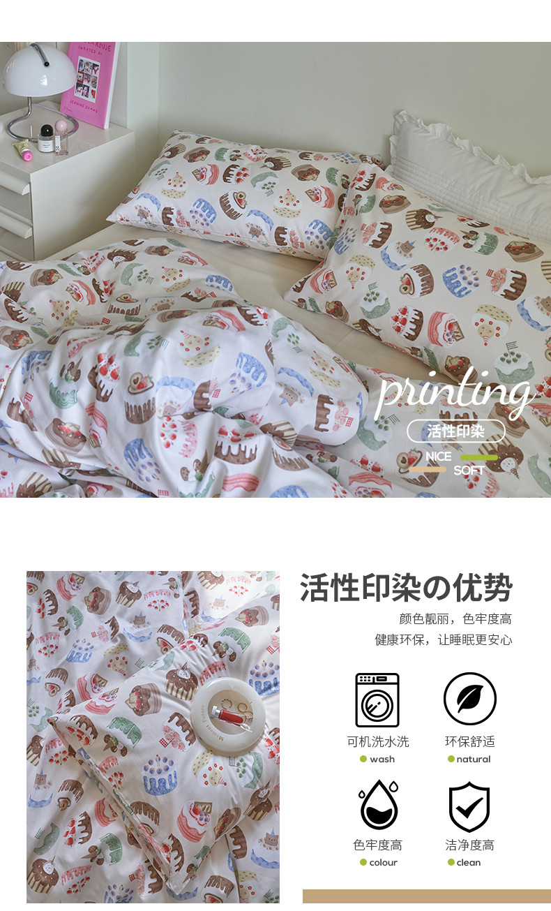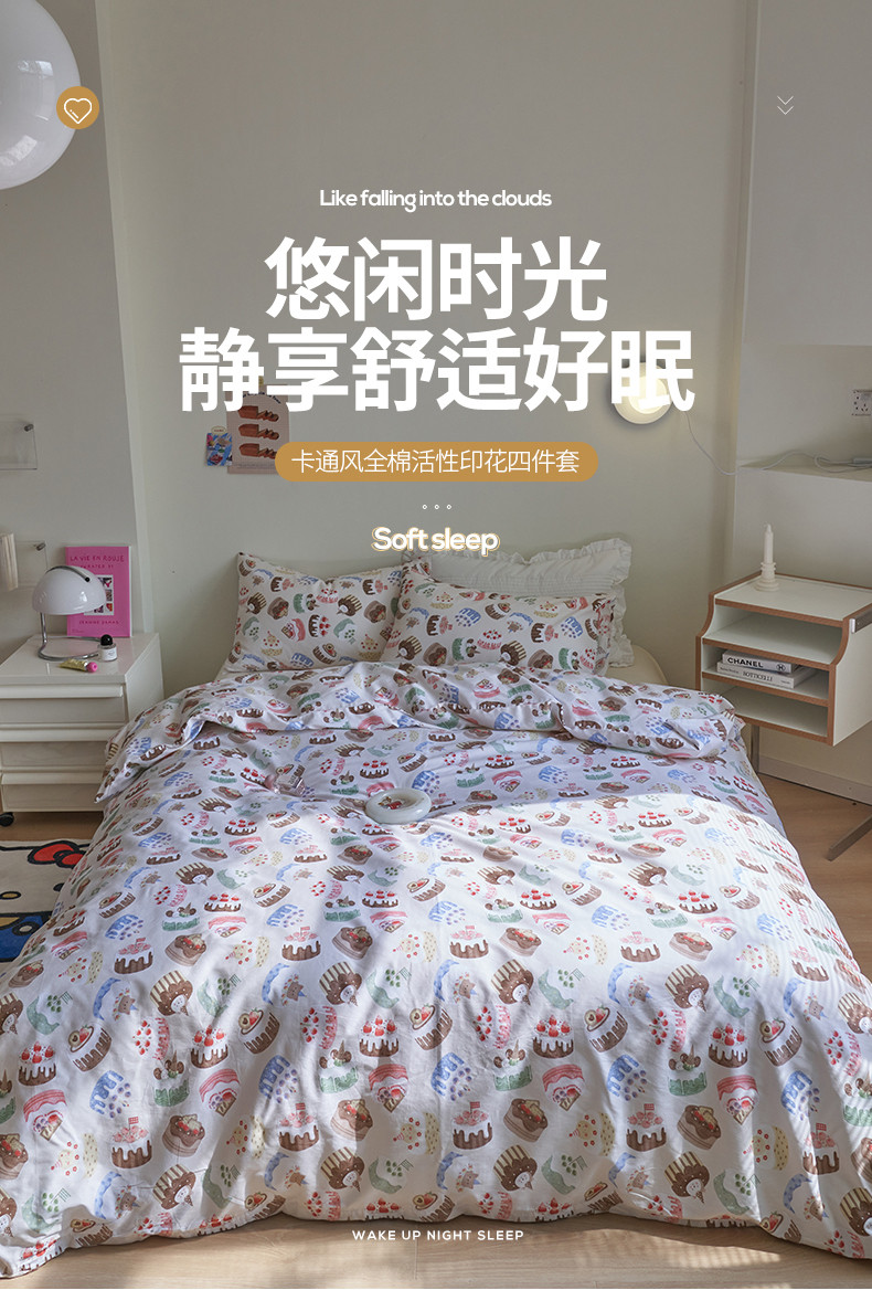 当前位置: 91家纺网 > 商品网购 > 床品套件 > 四件套 > 全棉普通四件套 > 窝米 2023新款13370全棉卡通风系列四件套 蛋糕慕斯