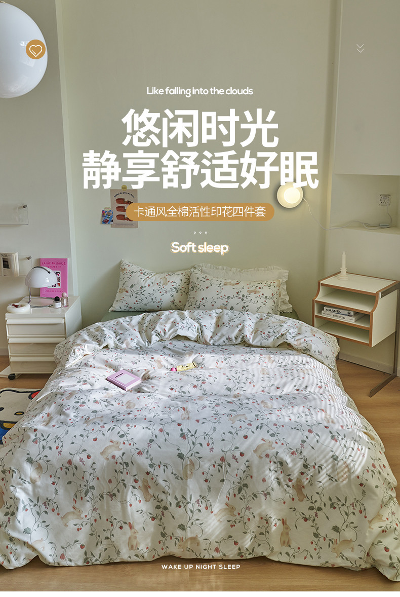 当前位置: 91家纺网 > 商品网购 > 床品套件 > 四件套 > 全棉普通四件套 > 窝米 2023新款13370全棉卡通风系列四件套 月德兔