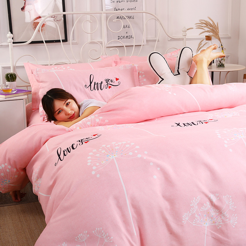 鑫缘2025直播爆款印花植物羊绒加厚磨毛四件套1.2米学生三件套 真爱永恒,真爱永恒
