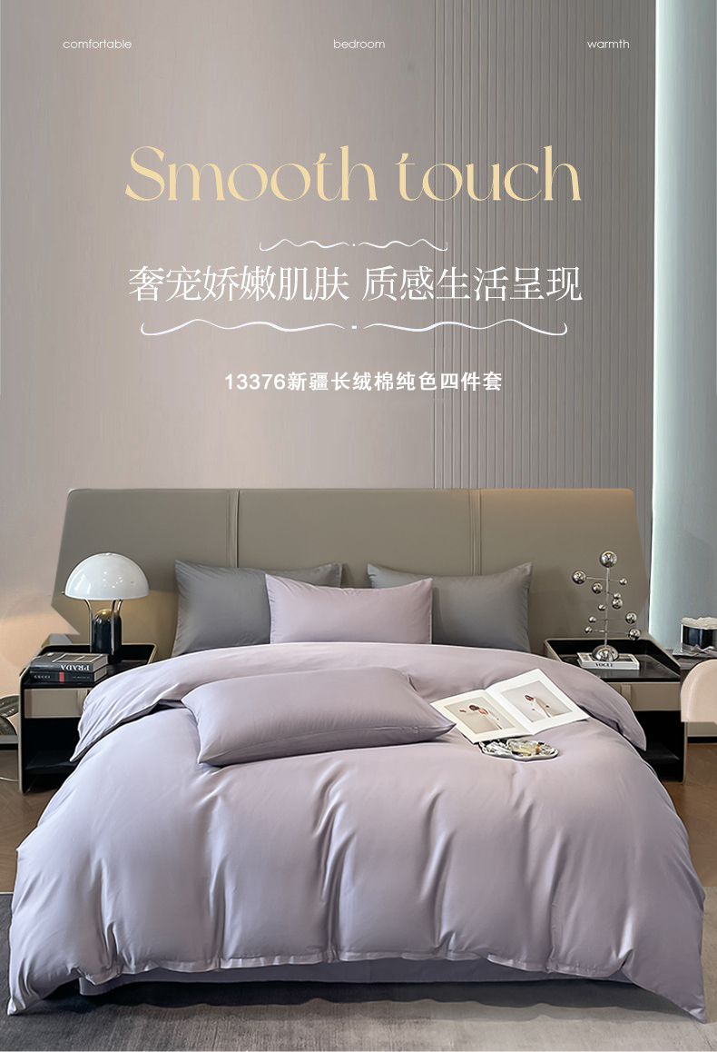 商品名称:柠馨 2023都市贵族系列13376铂金新疆长绒棉纯色四件套 雪山紫