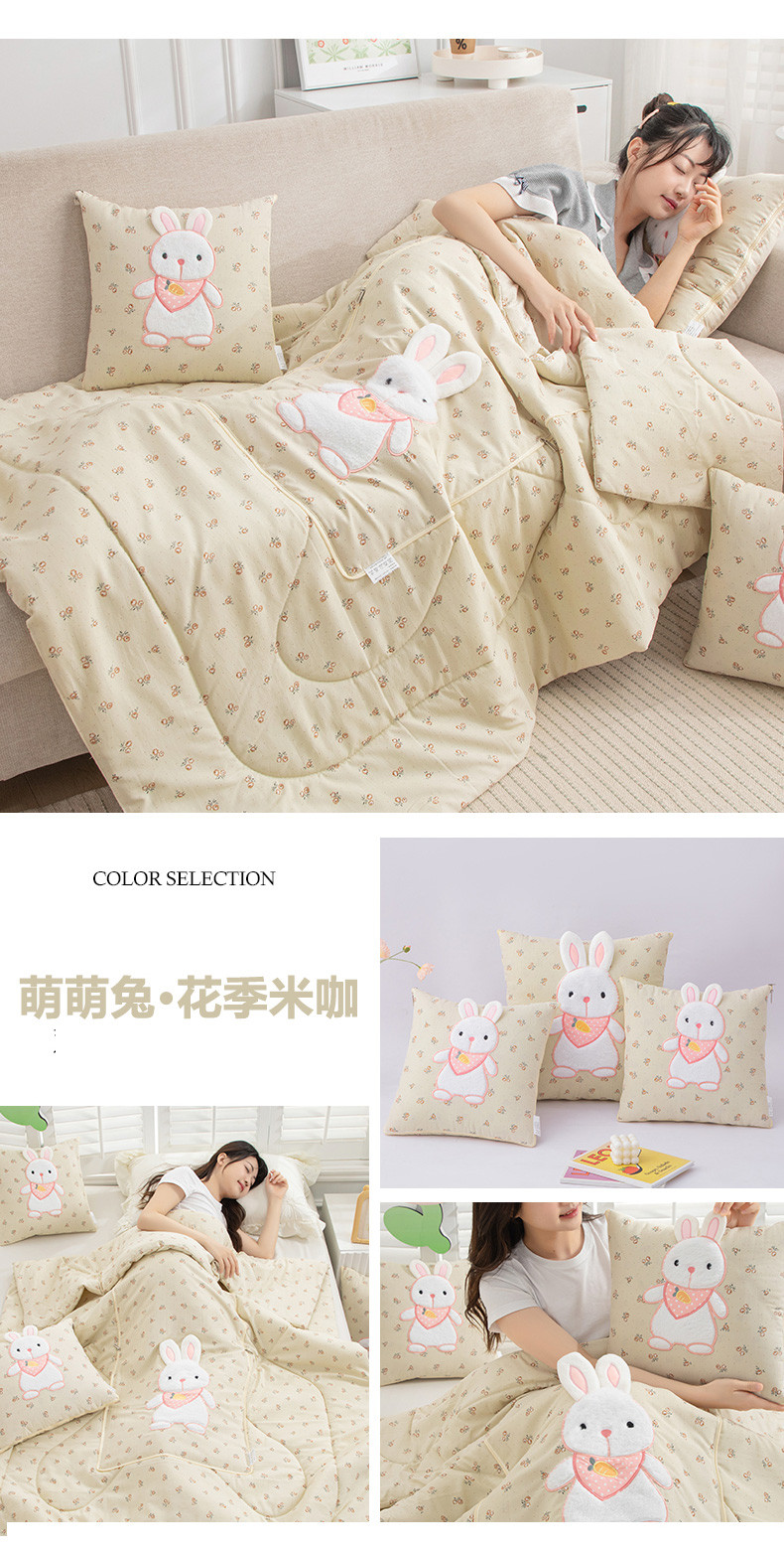 商品名称:翰轩家居 2023新款水洗棉麻植物精油香薰萌萌兔抱枕被 萌萌兔-花季米咖