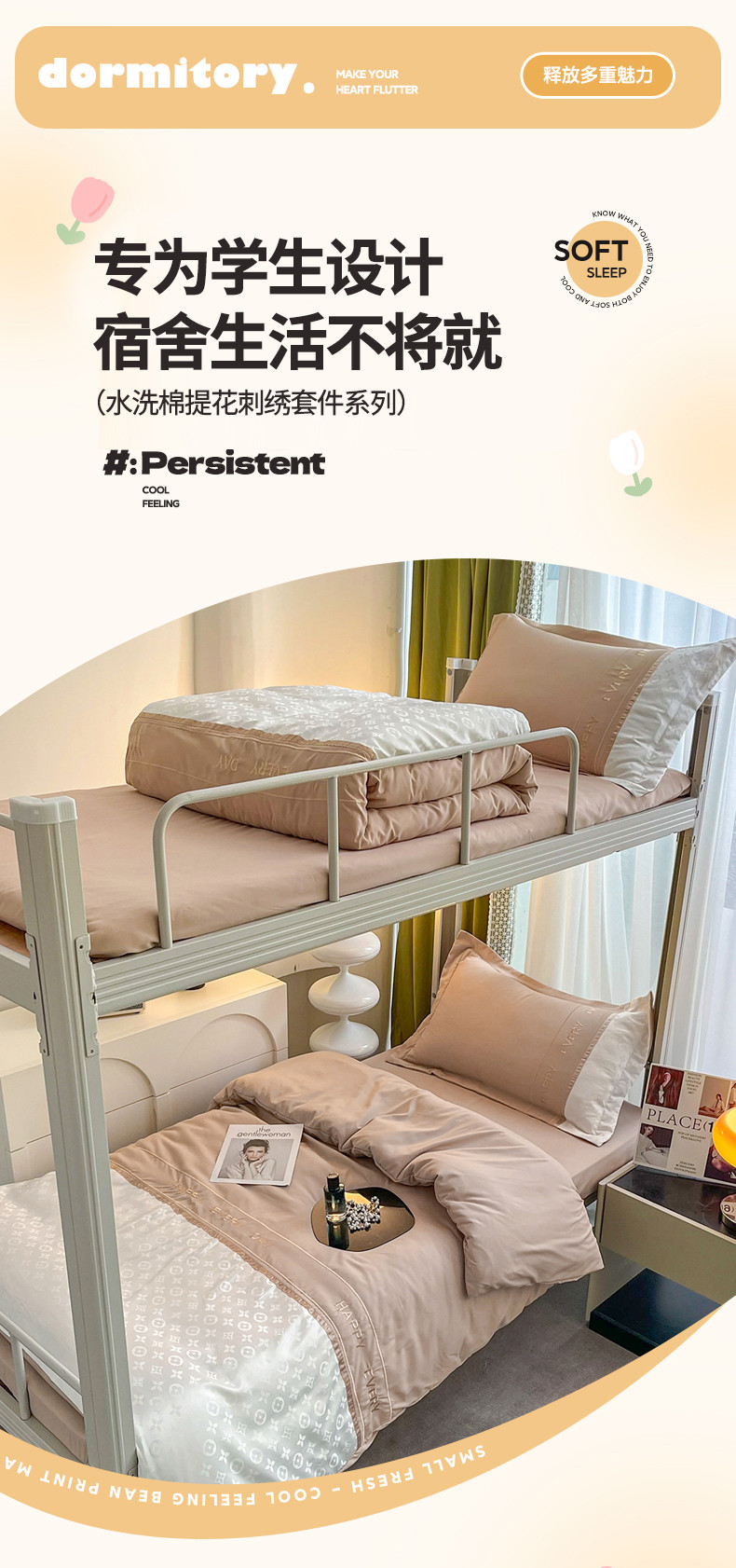 当前位置: 91家纺网 > 商品网购 > 床品套件 > 四件套 > 水洗棉四件套 > 苏源 2023新款学生季上下铺三件套四季水洗棉绣花提花四件套柏林系列 柏林-香槟金