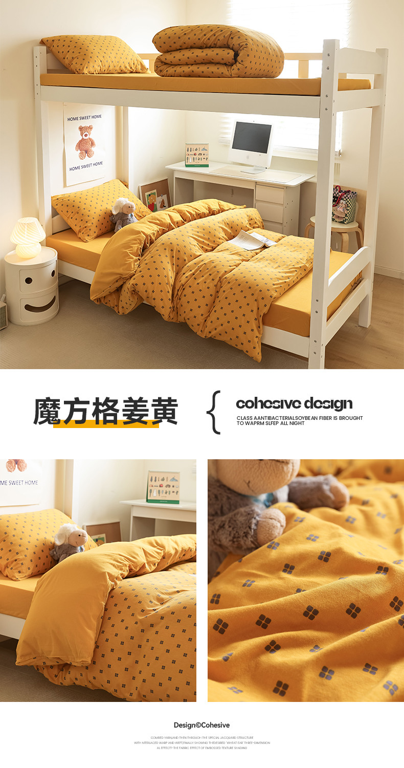 商品名称:寐眠 2023新款全棉针织棉学生三件套 魔方格姜黄