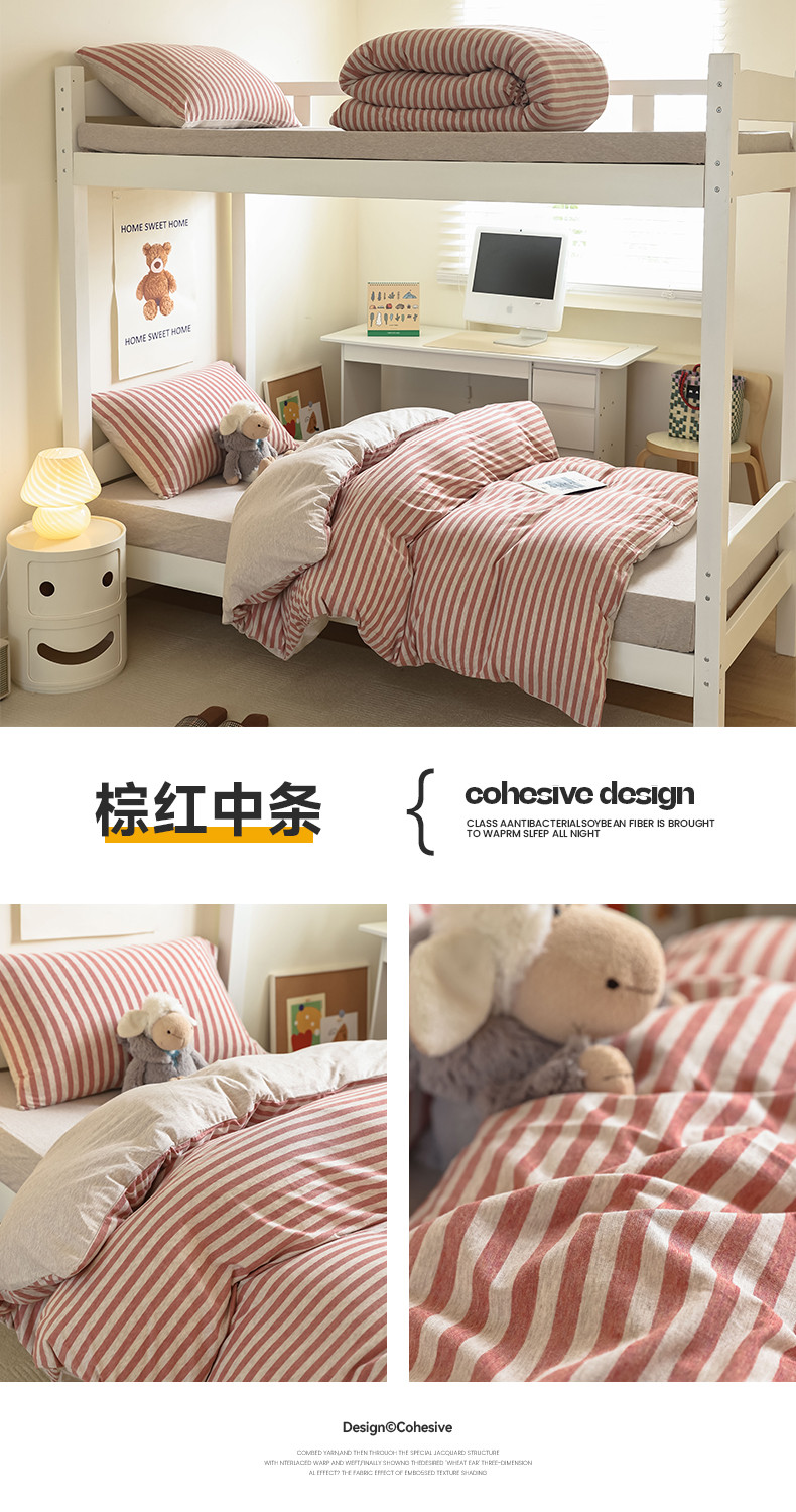 商品名称:寐眠 2023新款全棉针织棉学生三件套 棕红中条