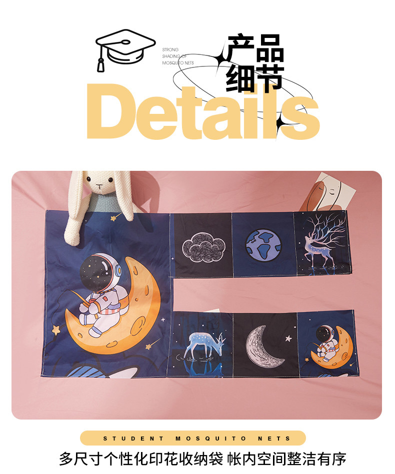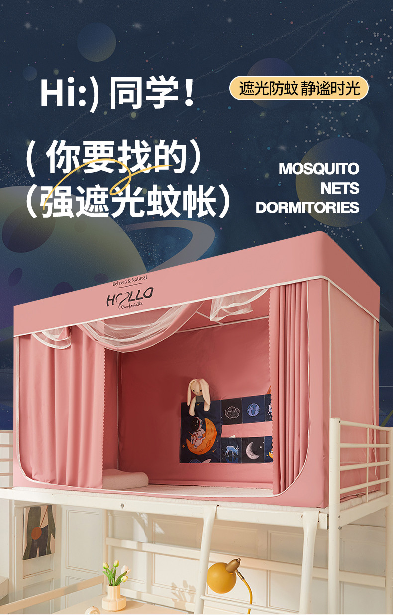 (总)世婕 2025新款学生床幔超强涂层遮光学生蚊帐宿舍蚊帐床帘式蚊帐,兔仙子,探索宇宙,涂层藏青,涂层全粉,涂层全灰,星月传奇,一路有你