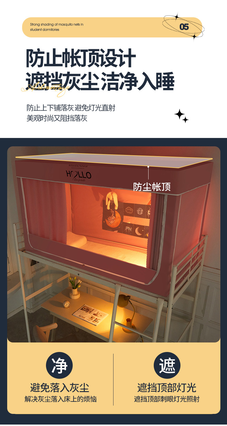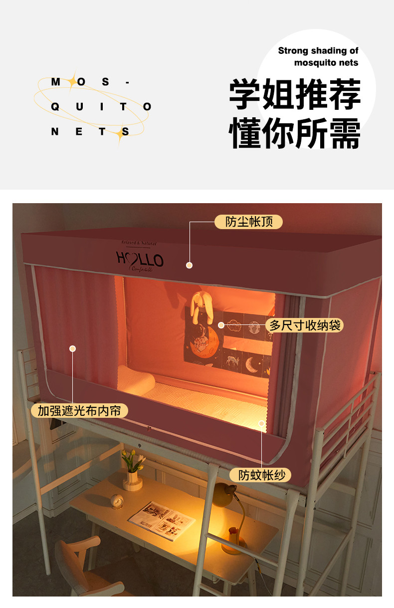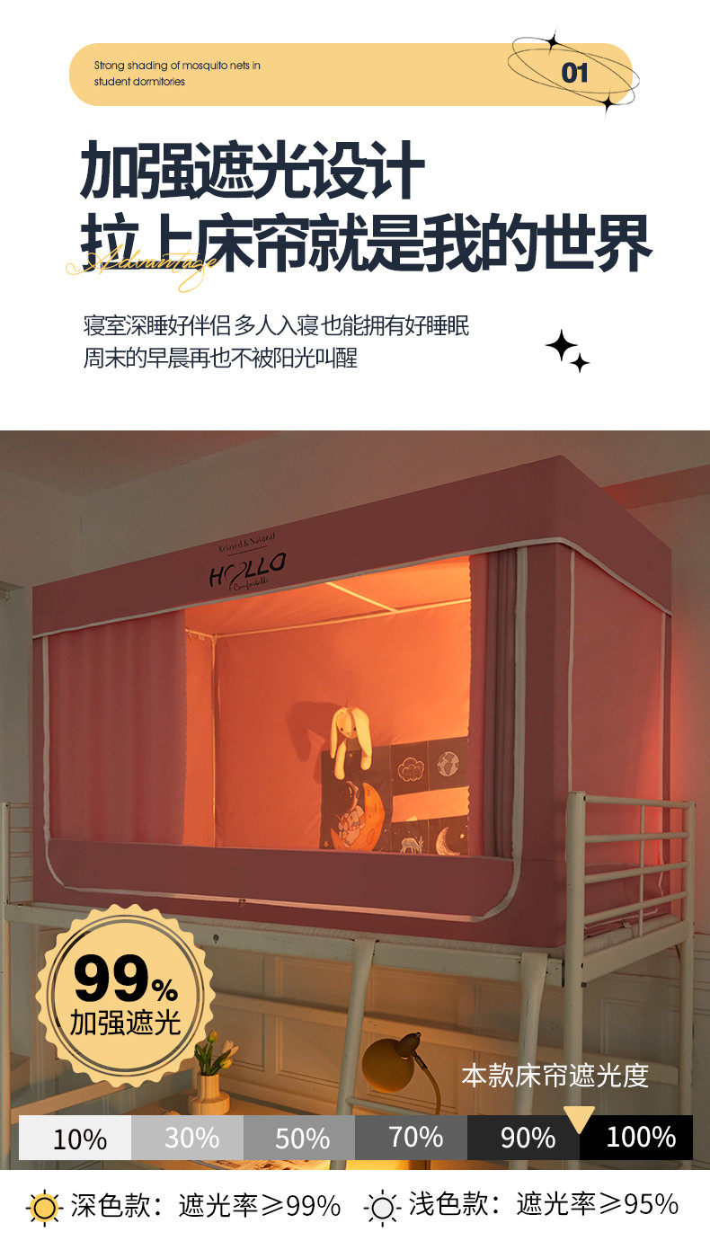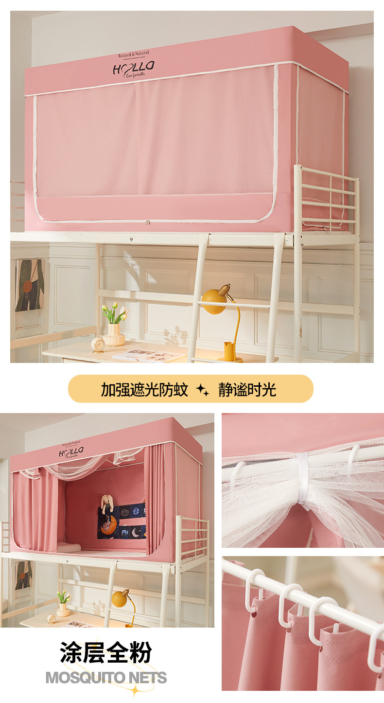 商品名称:世婕 2025新款超强涂层遮光学生床帘式蚊帐 涂层全粉