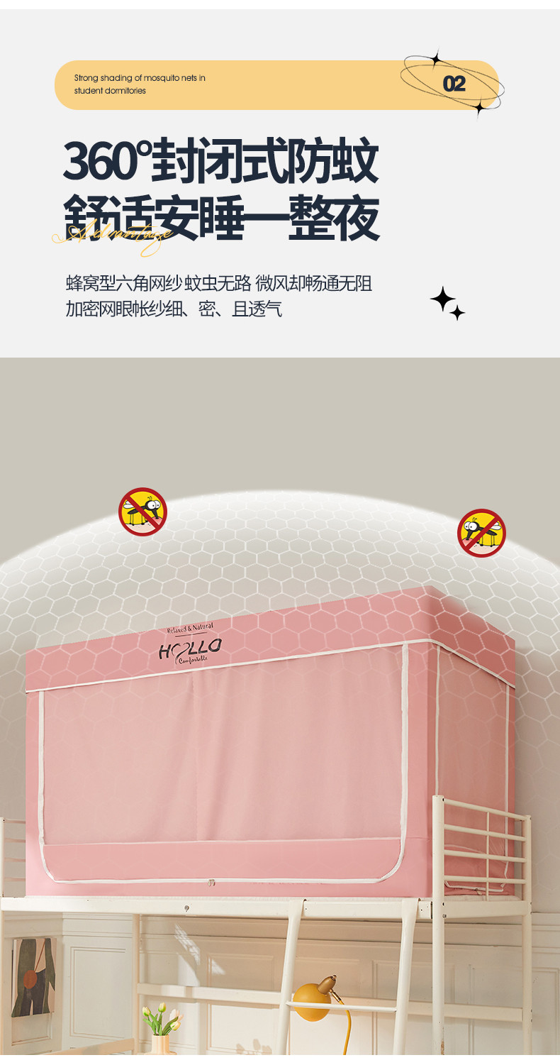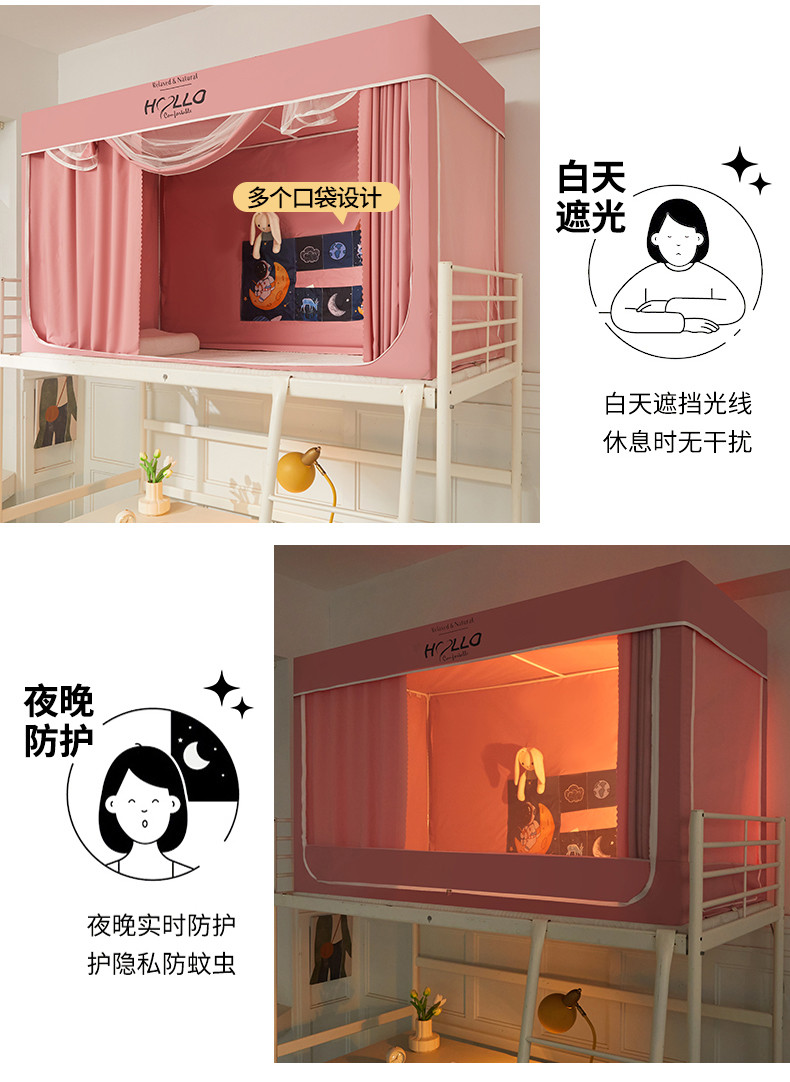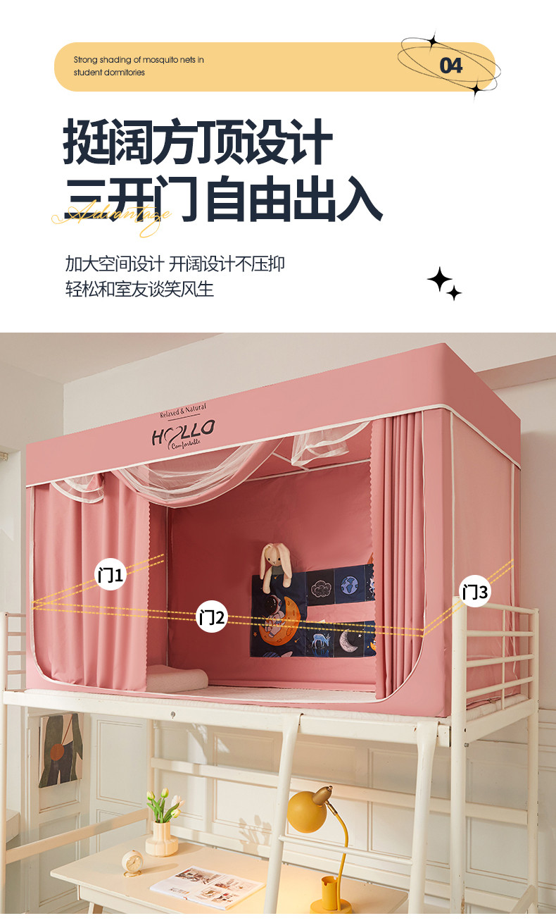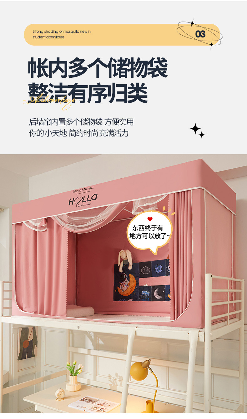 商品名称:世婕 2025新款超强涂层遮光学生床帘式蚊帐 涂层全粉