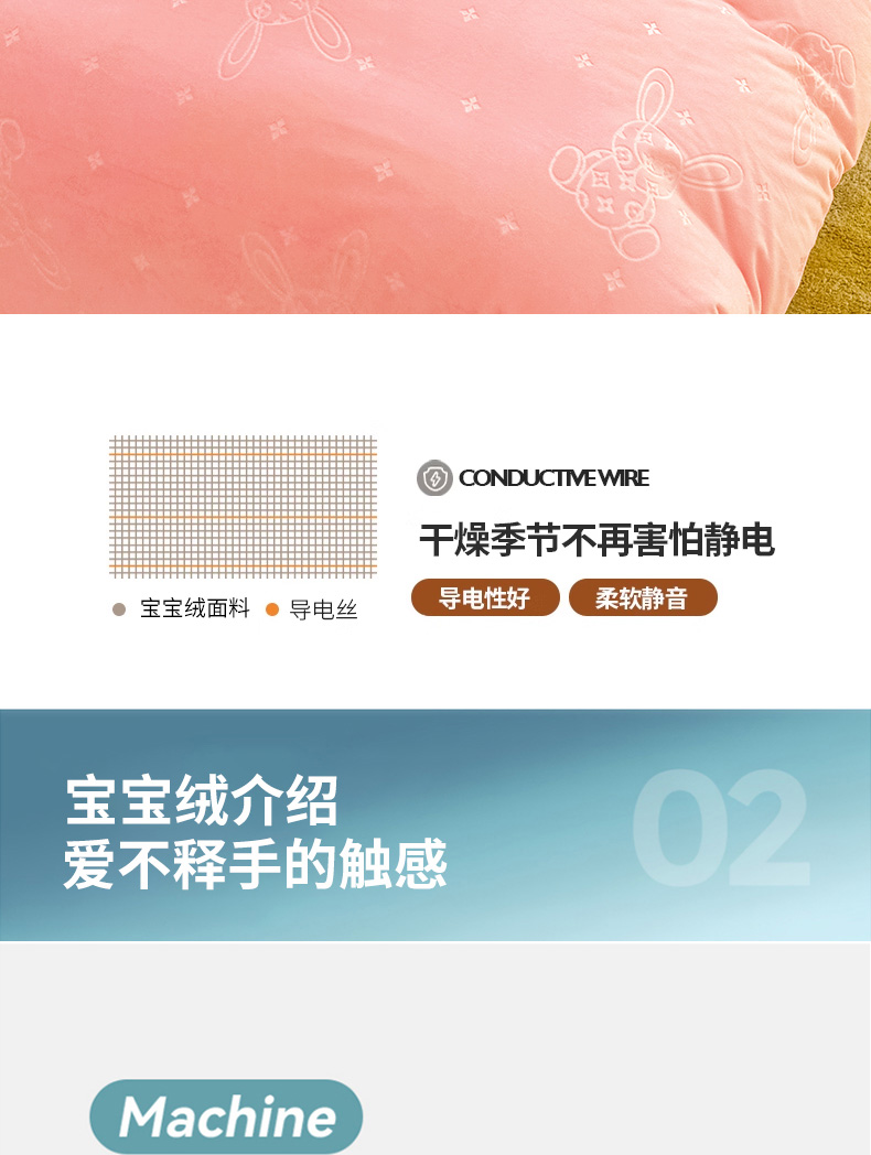 当前位置: 91家纺网 > 商品网购 > 床上用品 > 被套 > 新款全消光210克婴儿绒宝宝绒压花单被套定做定制尺寸 宝宝绒-粉小兔