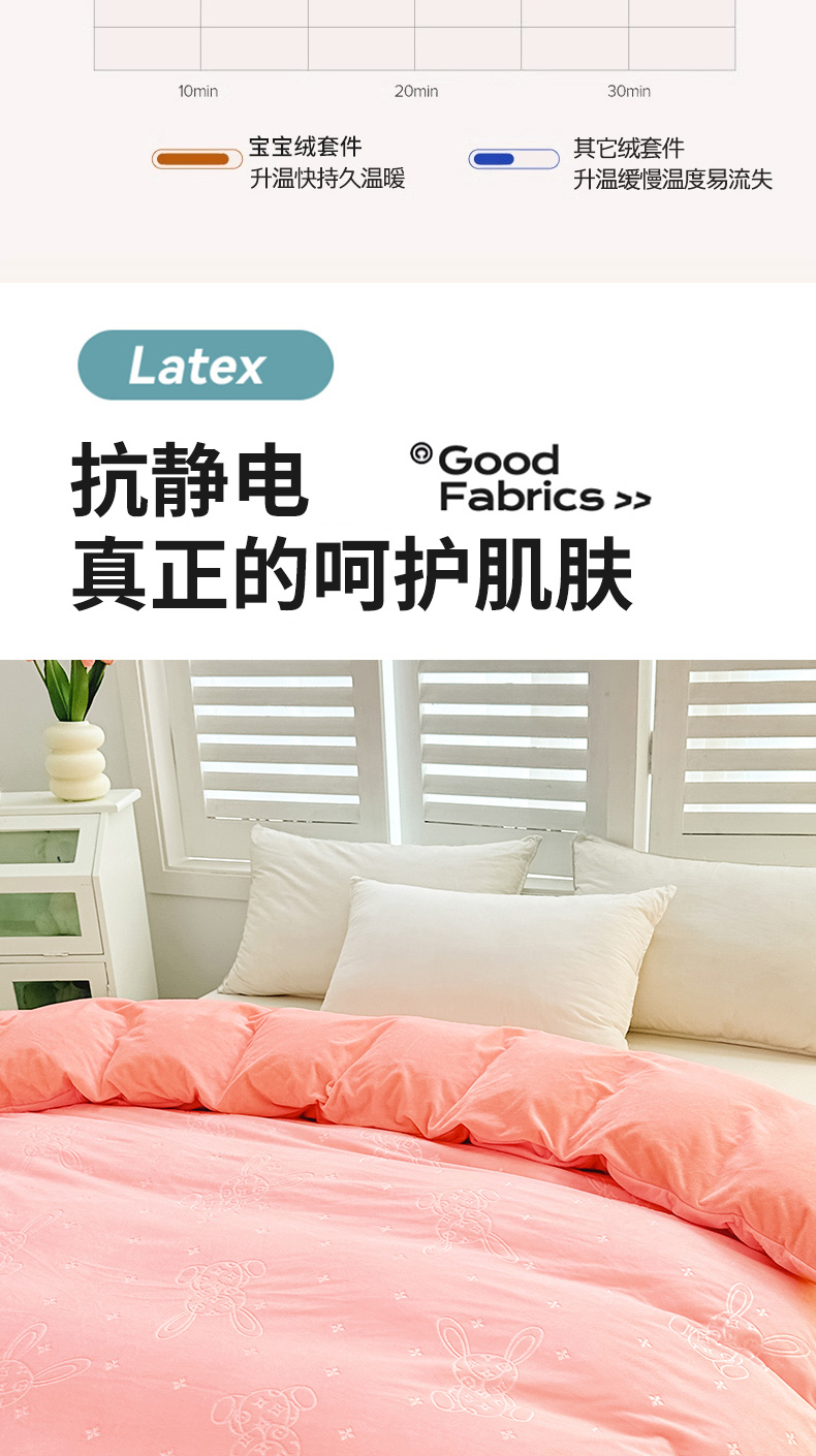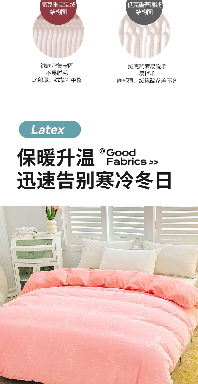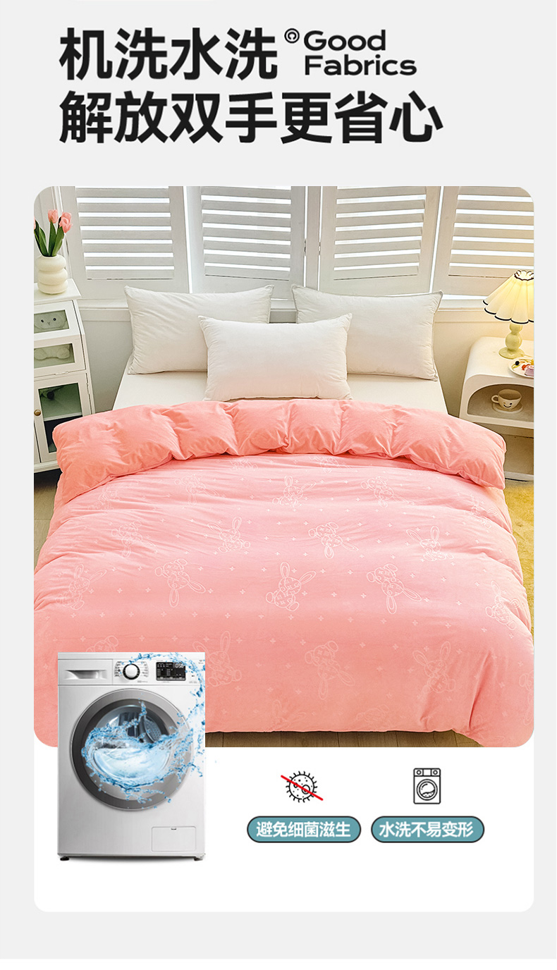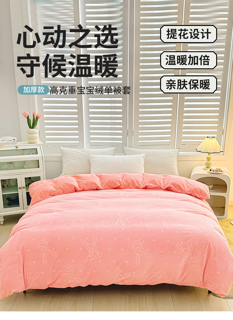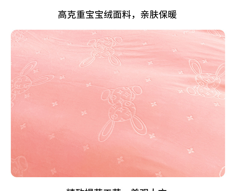 • 91家纺网 家纺一手货源 找家纺 新款全消光210克婴儿绒宝宝绒压花单被套定做定制尺寸 宝宝绒-粉小兔