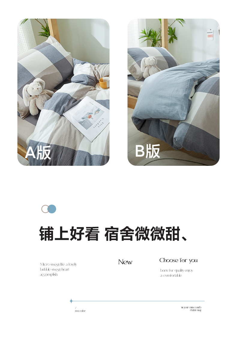 当前位置: 91家纺网 > 商品网购 > 床品套件 > 三件套 > 鸣升家纺 新款A类全棉水洗棉宿舍三件套 米棕丈青