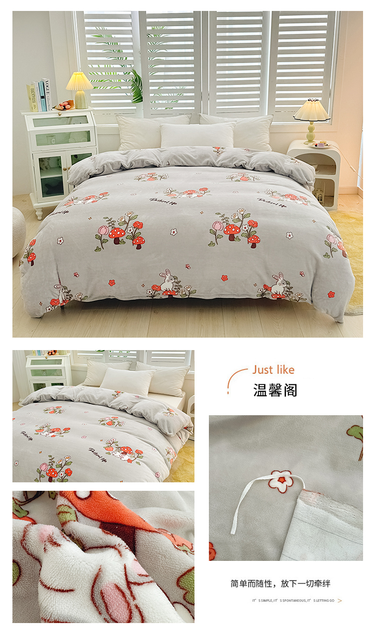 • 91家纺网 家纺一手货源 找家纺 新款230克高克重印花牛奶绒单被套定制定做尺寸 温馨阁