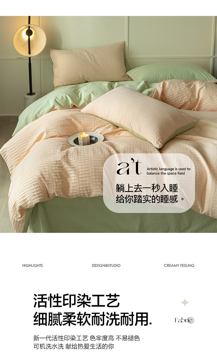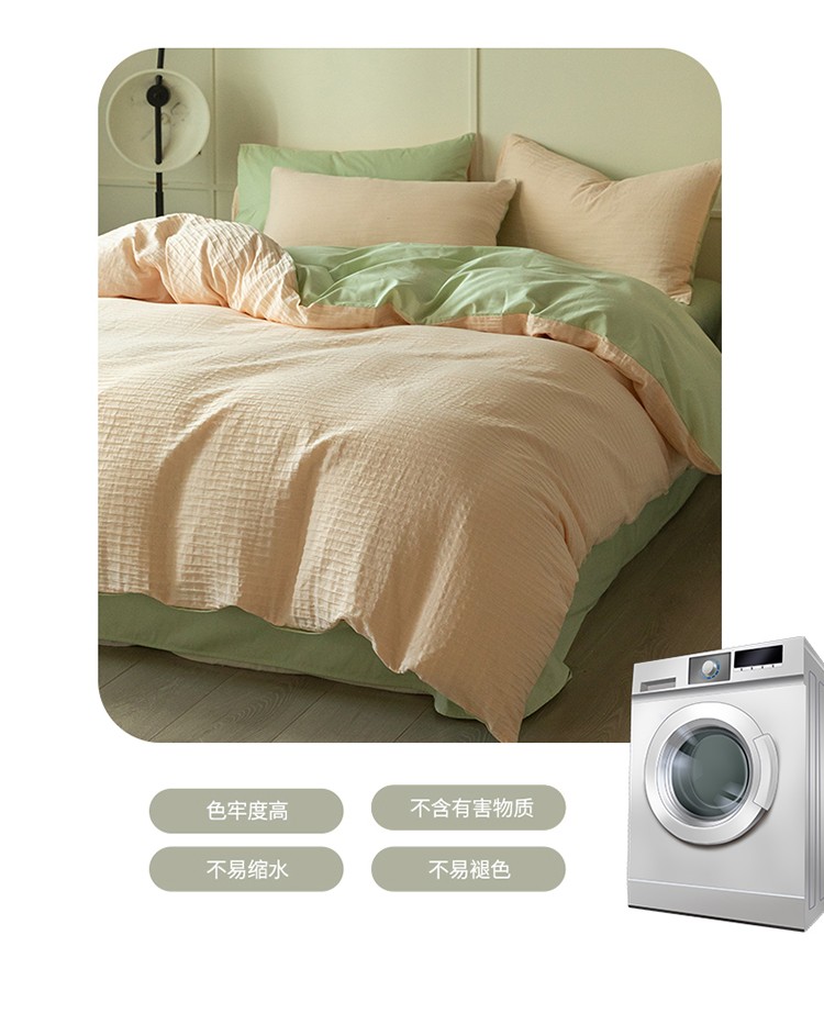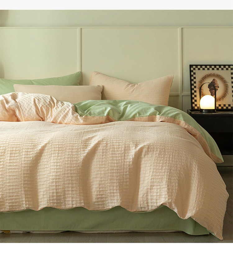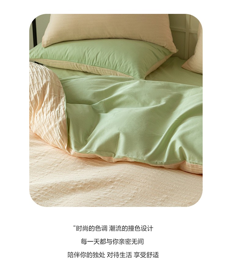 商品名称:雅居纺2023新款系全棉泡泡纱四件套 泡泡纱-粉+清新绿