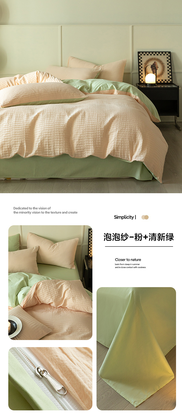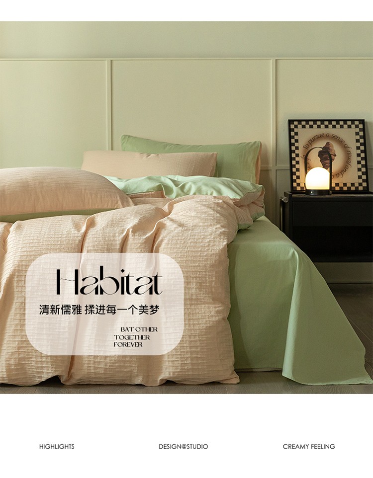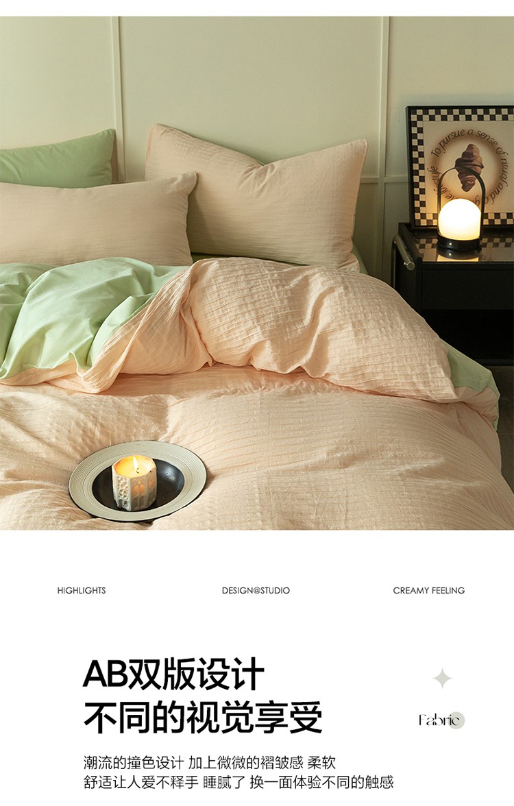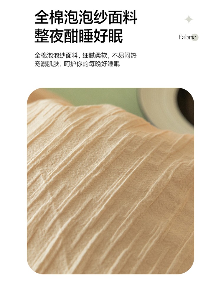 商品名称:雅居纺2023新款系全棉泡泡纱四件套 泡泡纱-粉+清新绿