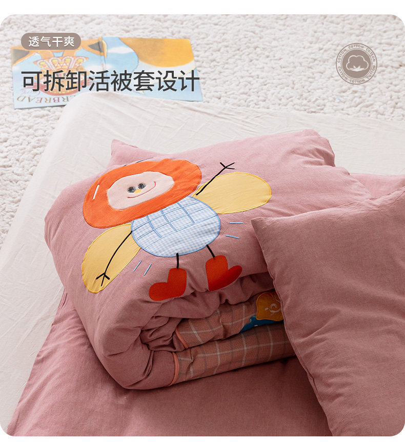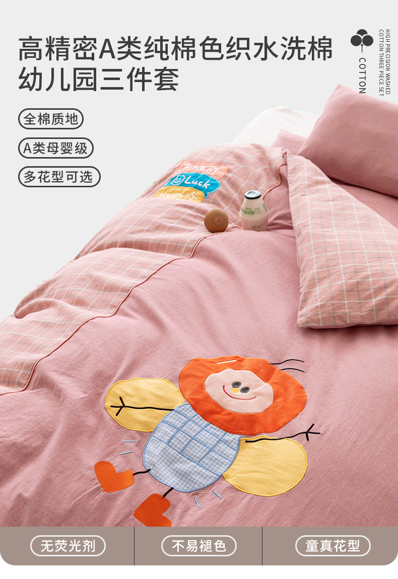 (总)喜多兔儿童家纺 2025新款小美好13372纯棉绣花幼儿园被子三件套多件套,组合图仅供展示,粉色美好小猫咪,粉色美好小兔子,黄色美好卡皮巴拉,黄色美好小狮子,蓝色美好独角兽,蓝色美好小熊,绿色美好小恐龙,绿色美好小青蛙