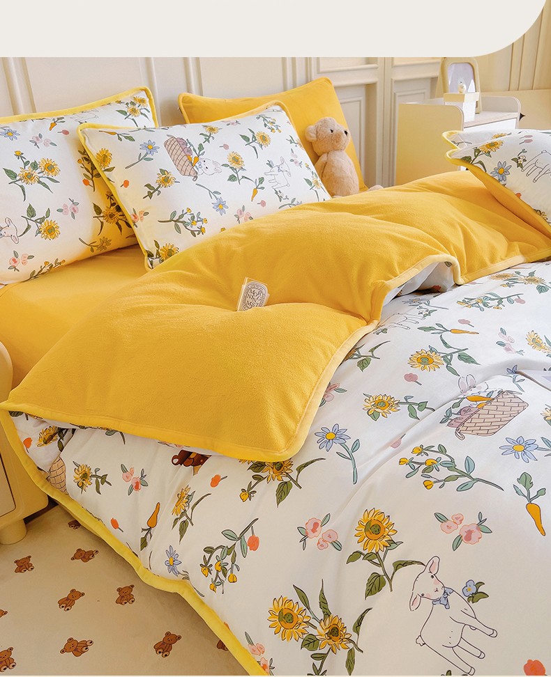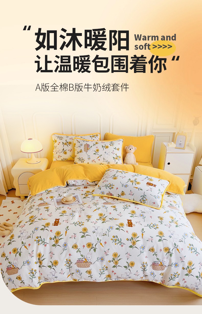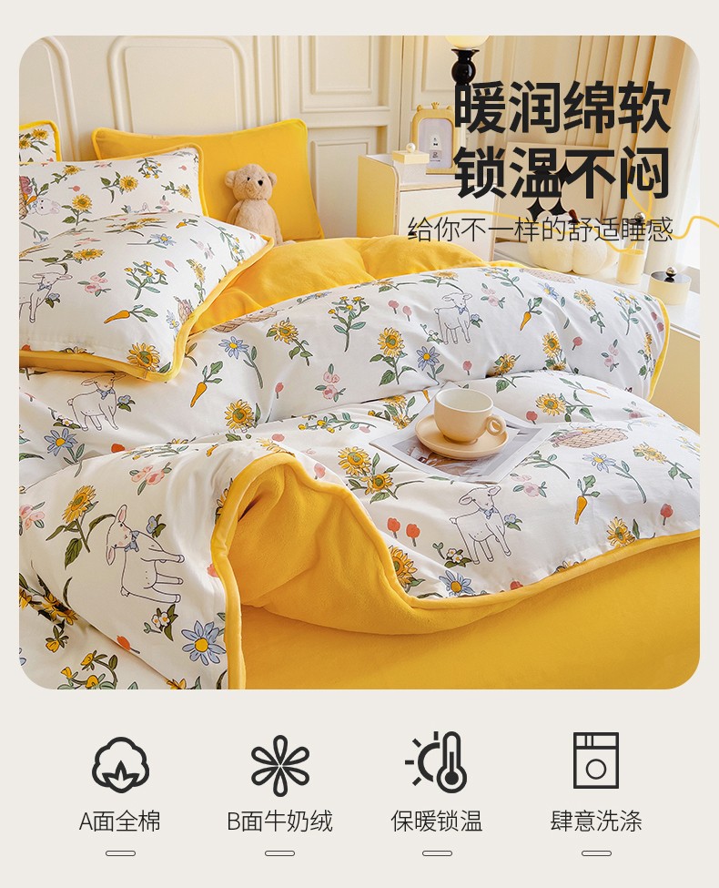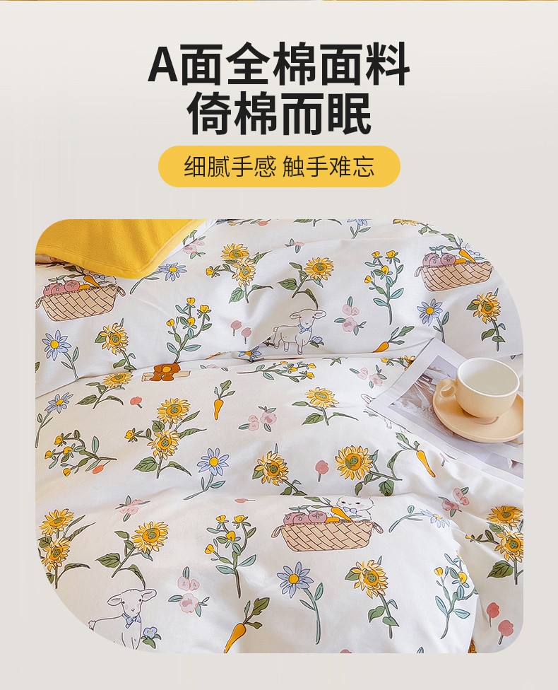 当前位置: 91家纺网 > 商品网购 > 床品套件 > 四件套 > 牛奶绒四件套 > 琪琪阁 2023新款A棉B绒棉加绒牛奶绒四件套单被套 阳光花梦