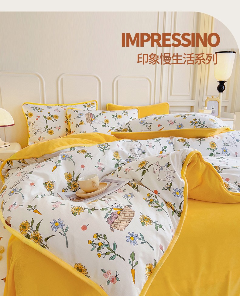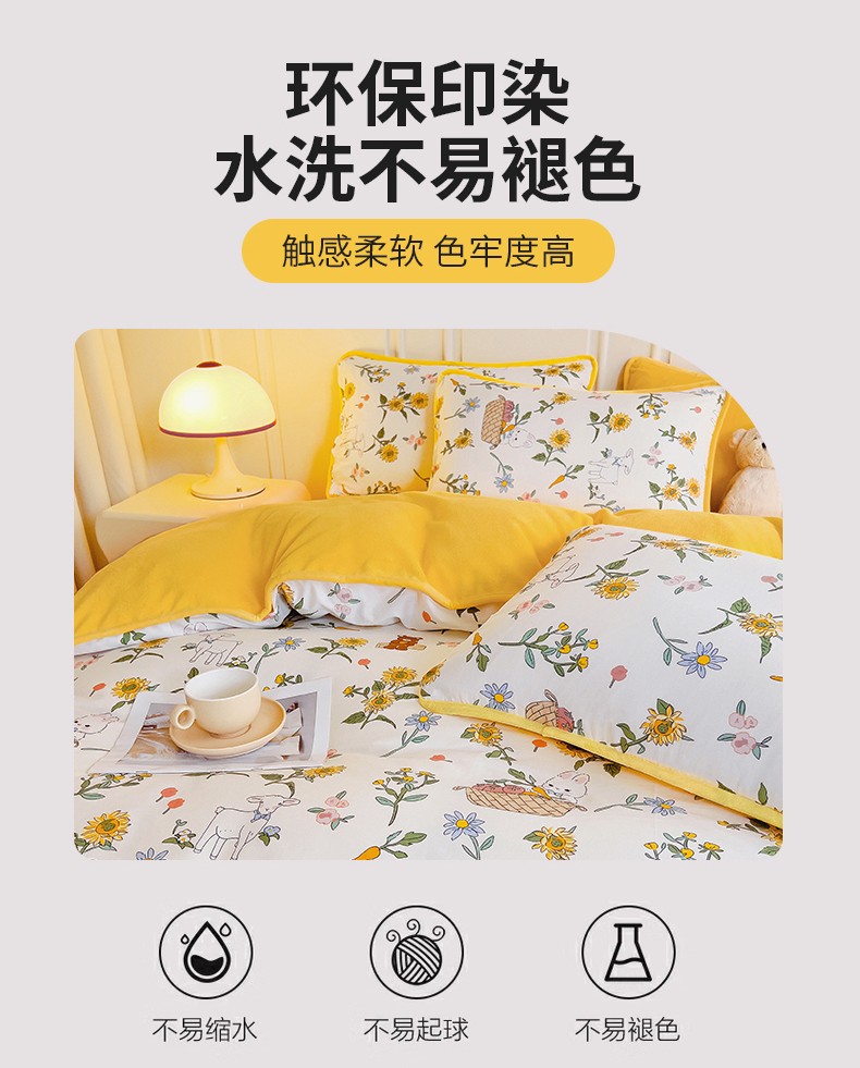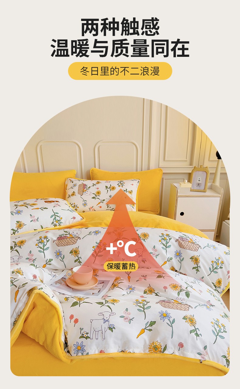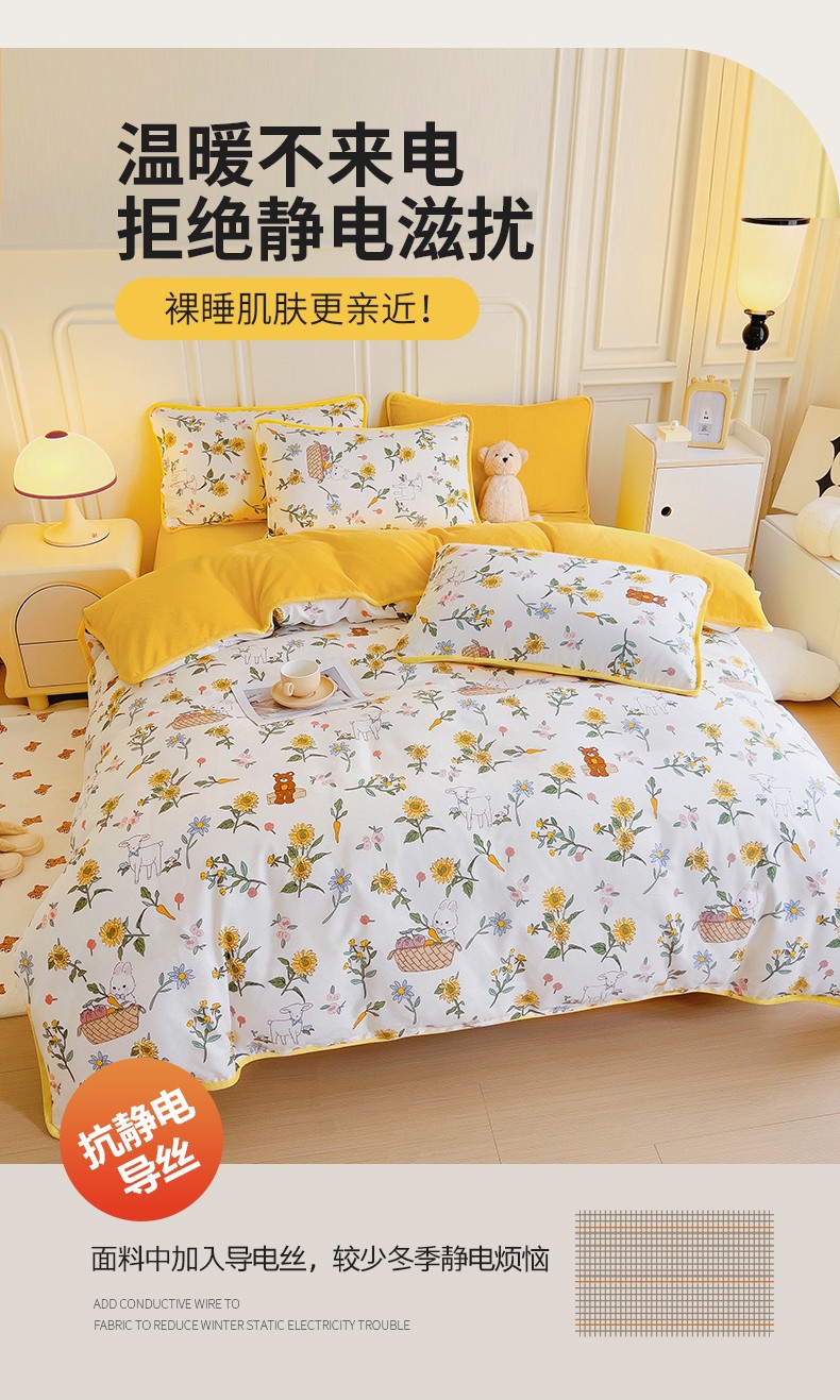 当前位置: 91家纺网 > 商品网购 > 床品套件 > 四件套 > 牛奶绒四件套 > 琪琪阁 2023新款A棉B绒棉加绒牛奶绒四件套单被套 阳光花梦