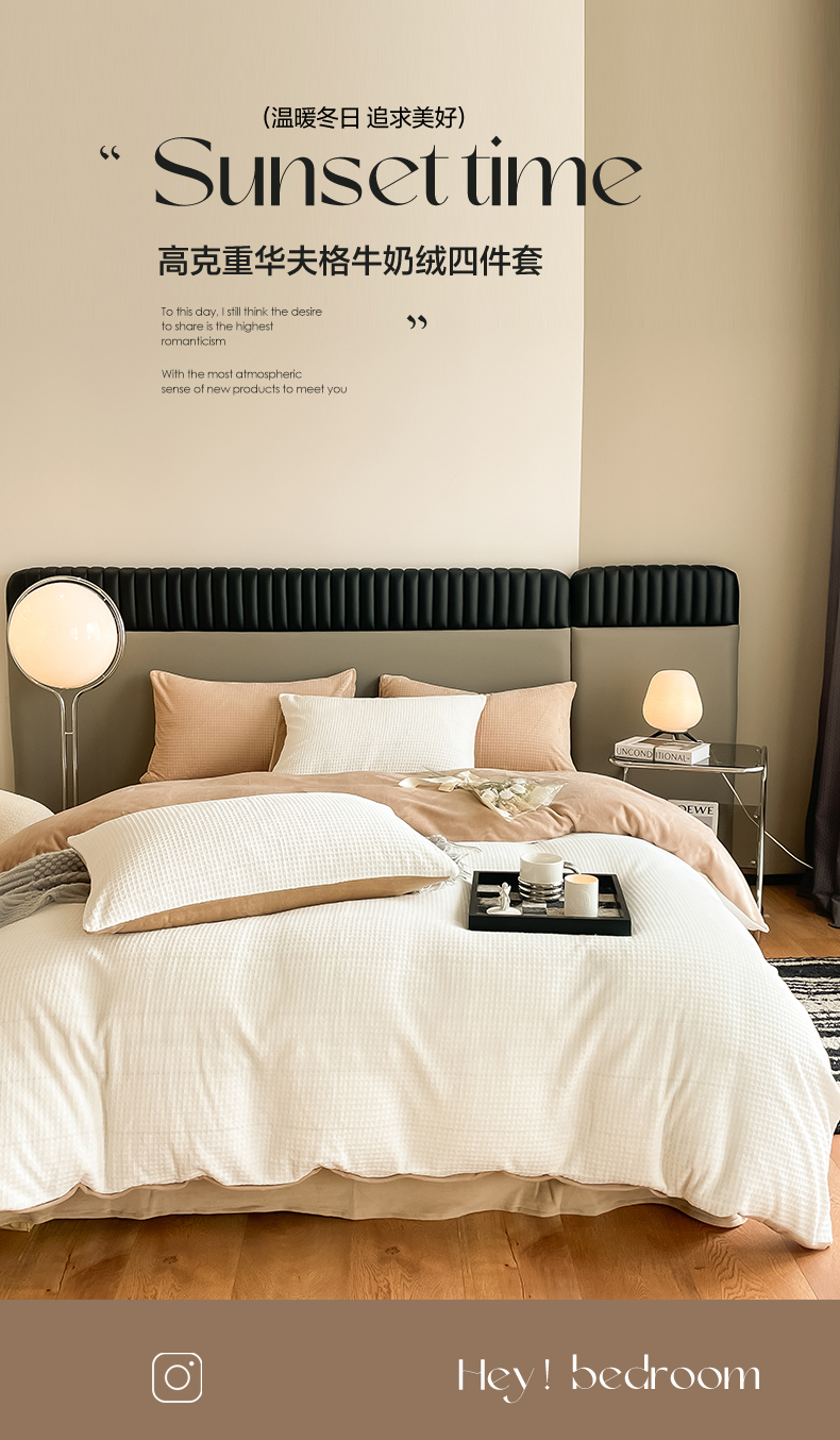 (总)雅居纺 2023新款华夫格牛奶绒四件套