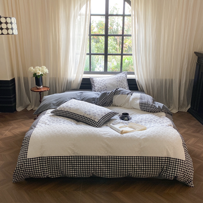 (总)旷野 2024双层纱碎花蕾丝拼接款四件套--柏林花事,柏林花事-粉,柏林花事-黑,柏林花事-奶咖