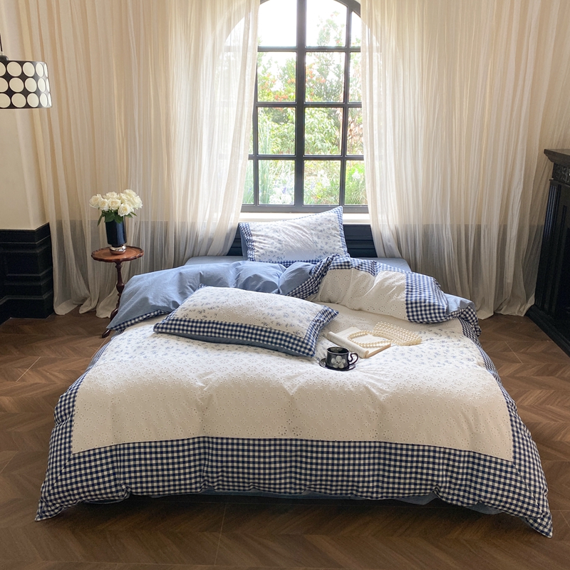 (总)旷野 2024新款100支全棉磨毛刺绣四件套,蓝色心情,山茶花抹茶绿,山茶花奶白,少女日记