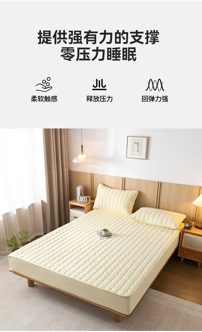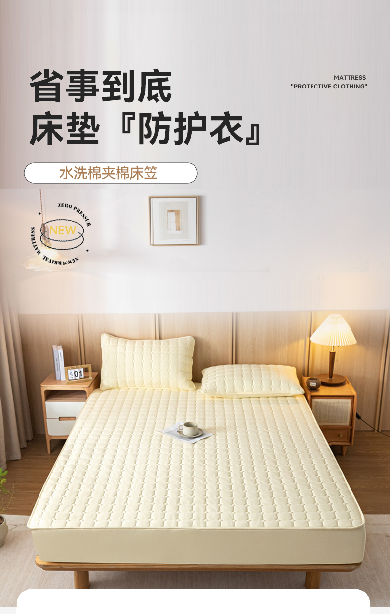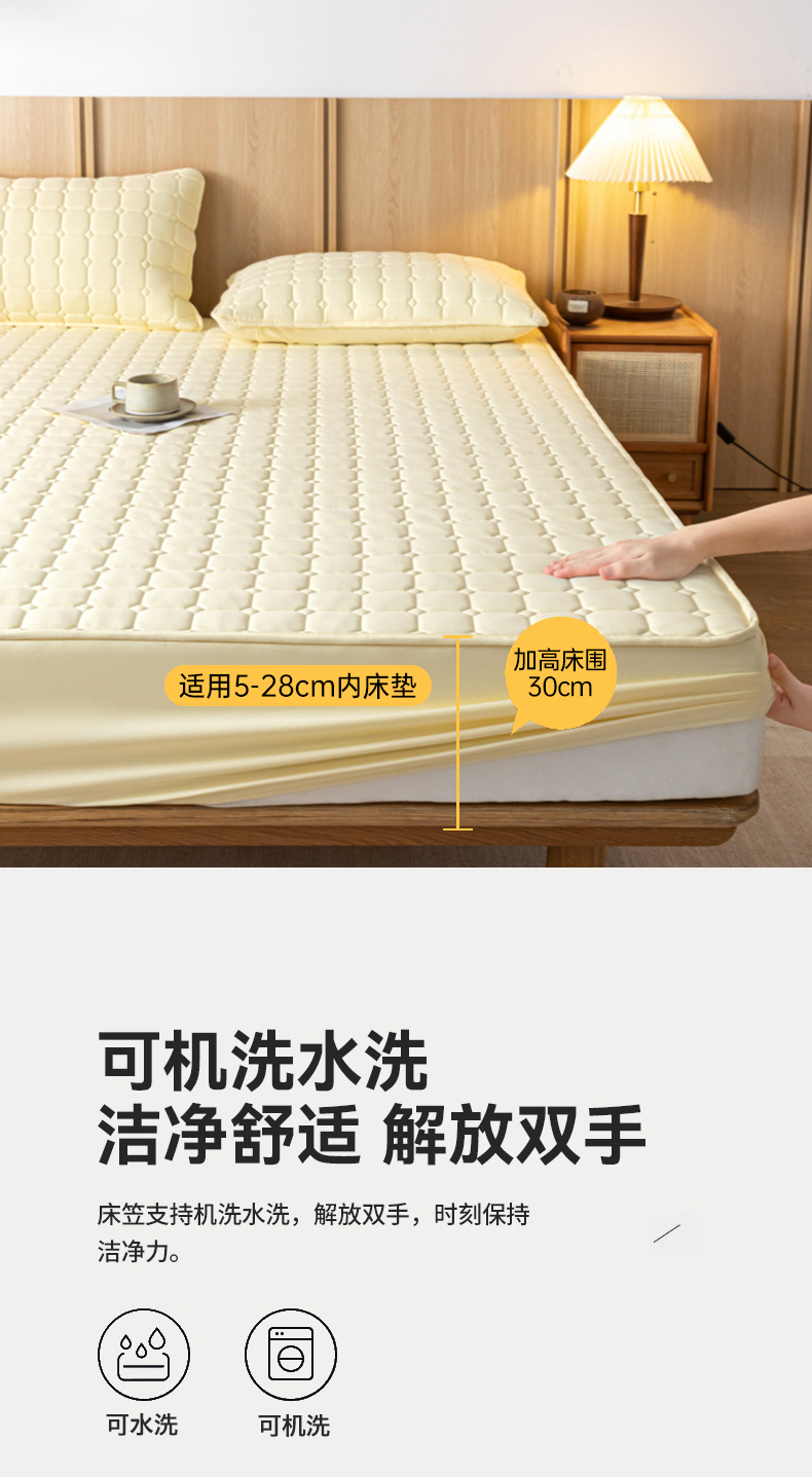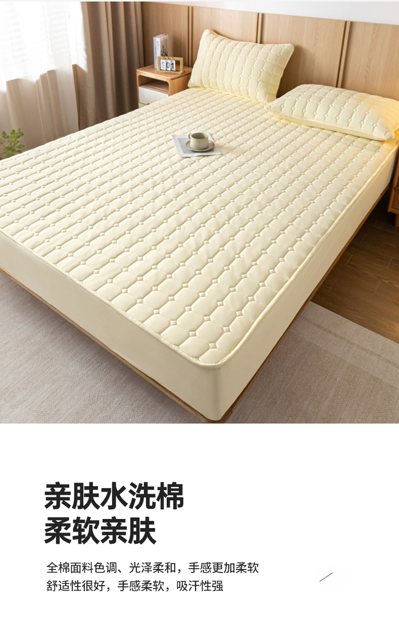当前位置: 91家纺网 > 商品网购 > 床上用品 > 床笠 > 宇淳 2026跨境外贸水洗棉夹棉单件床签床垫保护套四季通用防滑床罩梦思床垫保护罩三件套非全棉 奶黄
