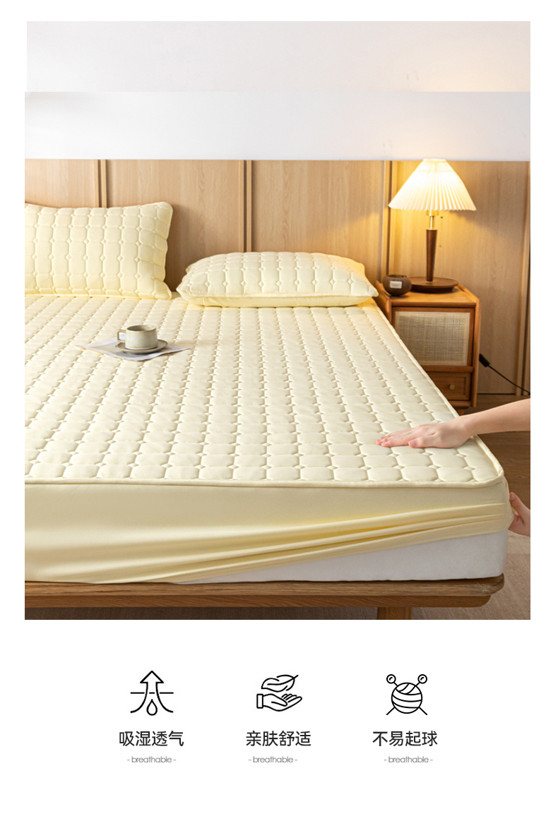 • 91家纺网 家纺一手货源 找家纺 宇淳 2026跨境外贸水洗棉夹棉单件床签床垫保护套四季通用防滑床罩梦思床垫保护罩三件套非全棉 奶黄